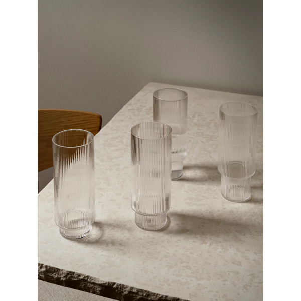 Ferm Living Ripple Long Drinking Glass sett med 4, clear
