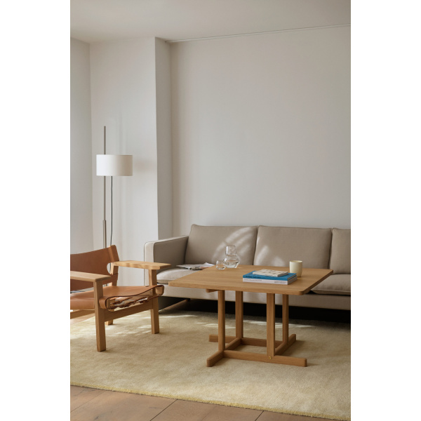 BM80 er et ærlig og harmonisk sofabord i heltre eik, opprinnelig designet av Børge Mogensen i 1961. Inspirert av den amerikanske Shaker-tradisjonen kjennetegnes bordet av et rent og balansert uttrykk, med gjennomtenkte detaljer som forskjøvede sammenføyninger og den synlige messingskruen som presist forankrer konstruksjonen.