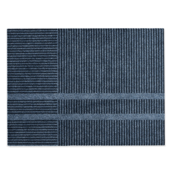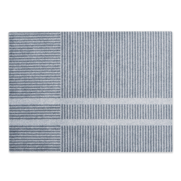 Løype Stormy Blue er inspirert av langrennssportens nypreparerte løyper. Et skispor krysser matten i et enkelt og grafisk mønster, som danner et nydelig spill mellom lys og skygge. Resultatet er både klassisk og moderne, hvor melerte nyanser gjør matten praktisk med hensyn til smuss og støv. Et godt hverdagsobjekt! Mattene er designet av Vera & Kyte.