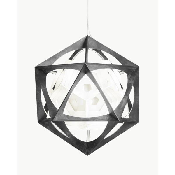 Pendelen er satt sammen av to kontrastfylte, men sammenkoblede geometriske former. Det ytterste laget er en stiv aluminiumsramme i form av et ikosaeder med 20 trekantede sider. Den indre formen ser ut til å sveve i rammen, og den består av en hvit polykarbonatreflektor med geometrisk form som et dodekaeder med 12 femkantede sider.