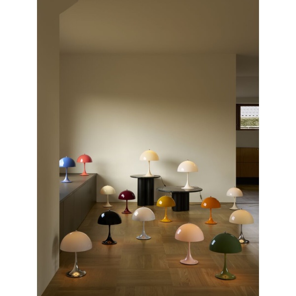 Panthella 250 Portable bordlampe er en nedskalert utgave av Verner Pantons populære Panthella bordlampe, for enkel plassering i vinduskarmer, hyller eller på bord. Uansett hvilken farge eller hvilket materiale du velger, vil bordlampen Panthella 250 Portable gi fantastisk lys til alle omgivelser.