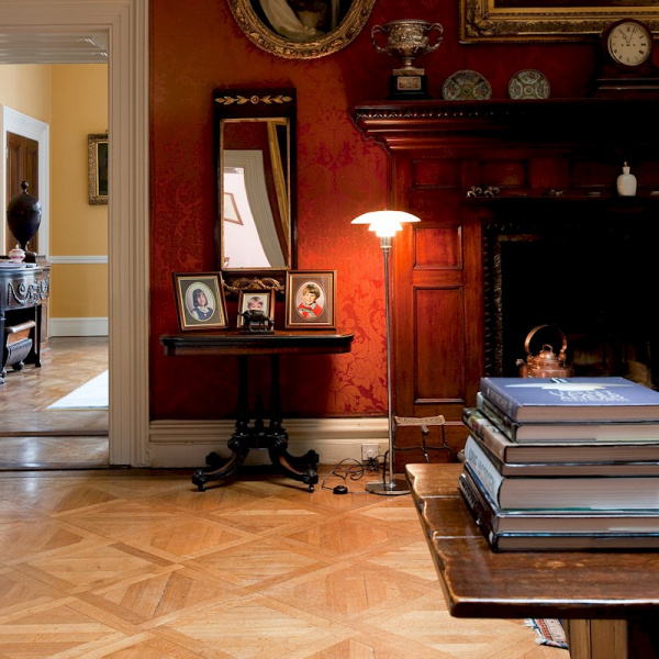 kr 23.000.00PH 3 1/2-2 1/2 Gulvlampe er medlem av PH 3-skjermsfamilien. Prinsippet bak PH 3-skjermslampen ble skapt i 1925-26 for en stor utstilling i København. Armaturet er designet etter et prinsipp basert på et reflekterende tre-skjermssystem, og gir et blendfritt, nedadrettet lys.