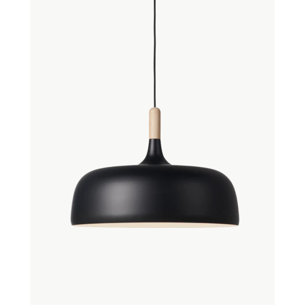 Opprinnelig pris var: kr 3.990.00.kr 2.394.00Nåværende pris er: kr 2.394.00.Acorn er en organisk formet hengelampe, satt sammen av en kombinasjon av en eiketopp og en oljemalt matt aluminium skjerm. Lampen er inspirert av de nordiske skoger og formen på eikenøtten. Du kan velge mellom matt off-white, matt grå eller nyheten matt sort utside, alle er matt hvit på innsiden. Skjermen er av aluminium og eik/valnøtt. Det følger med både eik og valnøtt topp til skjermen, slik at du kan velge selv hva du ønsker å kle lampen med.