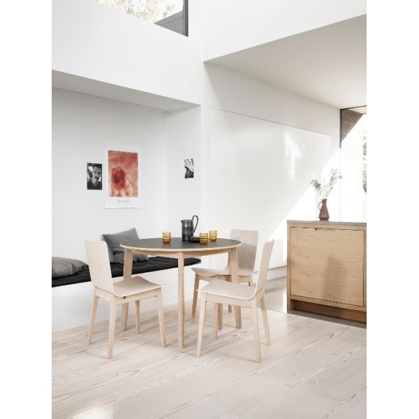 Bordene har et praktisk oppbevaringsrom under bordplaten som rommer opptil to illeggsplater, slik at du alltid har dem lett tilgjengelig. Den fjerde platen oppbevares separat.