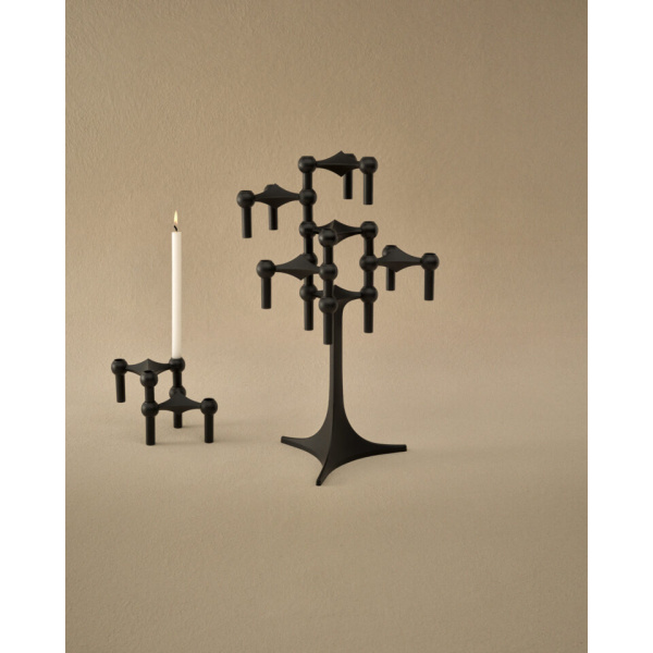 Den svarte utgaven er en moderne og rå vri på det klassiske Nagel-lysestakedesignet. Den regnes som et kunstverk – et personlig uttrykk og en formbar skulptur klar til å anta formen av eierens unike kreativitet. Lag og kombiner den med andre STOFF Nagel-design og bruk den med skjærelys, eller la den være som en dekorativ skulptur.