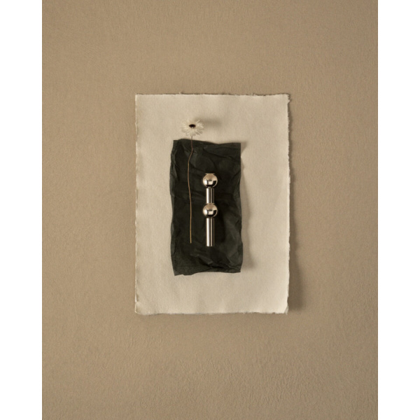 Den er designet som en naturlig fortsettelse av det karakteristiske STOFF Nagel-uttrykket og kan kombineres med både lysestaker, skål og stativ. Vasen gir en ekstra dimensjon til det klassiske designet og lar deg inkludere en fargerik blomsterdekorasjon etter eget valg til skulpturen din.