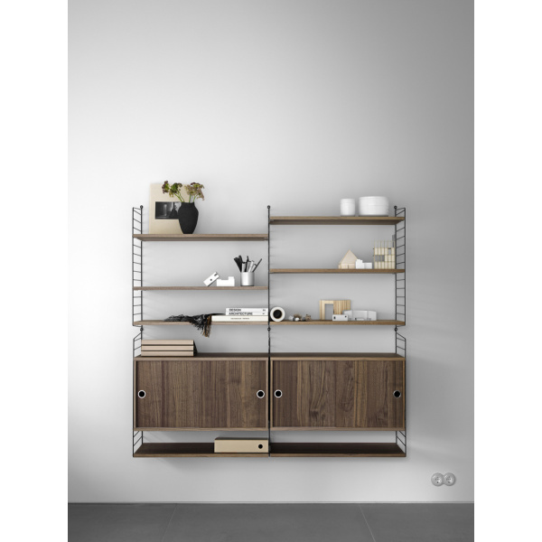 Nils Strinning’s ikoniske hylle system string®, ble designet i 1949. String’s hyllesystem er funksjonelt om veggen er liten eller stor, sokkelen er lett å montere, hyllene kan raskt omplasseres, den er stabil og kan utvides i alle retninger. Hyllene og sidepanelene fås i flere farger, hvilket gjør at String har mange forskjellige uttrykk. Alt dette, sammen med det tidløse, minimalistiske design gjør, at String stadig tiltrekker oppmerksomhet den dag i dag.