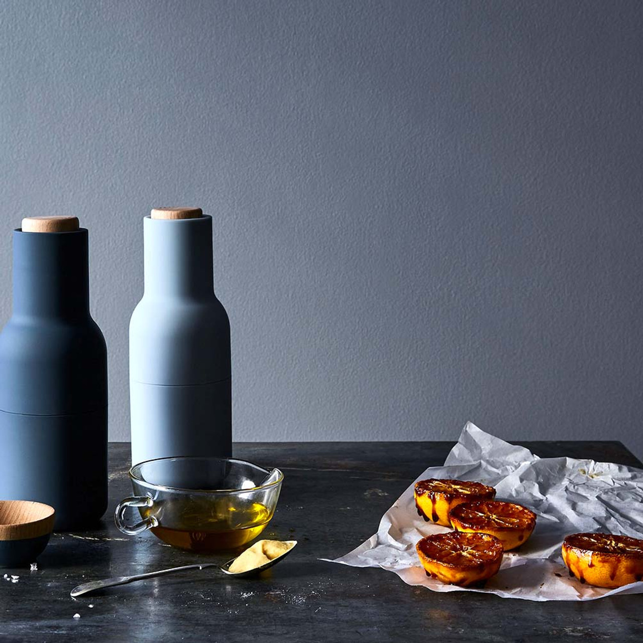 Bottle Grinder er et todelt sett med salt- og pepperkverner, hver utstyrt med en kraftig keramikkmølle som gjør det lett å male et bredt utvalg av krydder. Settet er formet som flasker som ligger komfortabelt i hånden, og tilbys i en rekke hardtarbeidende materialer og farger, inkludert Barley, en varm og beroligende nøytral som fungerer med ethvert kjøkkendesign. Enkel å betjene, fylle og rengjøre, den oppreiste designen sikrer at overflatene forblir fri for uønskede rester mens måltidene er krydret til perfeksjon.