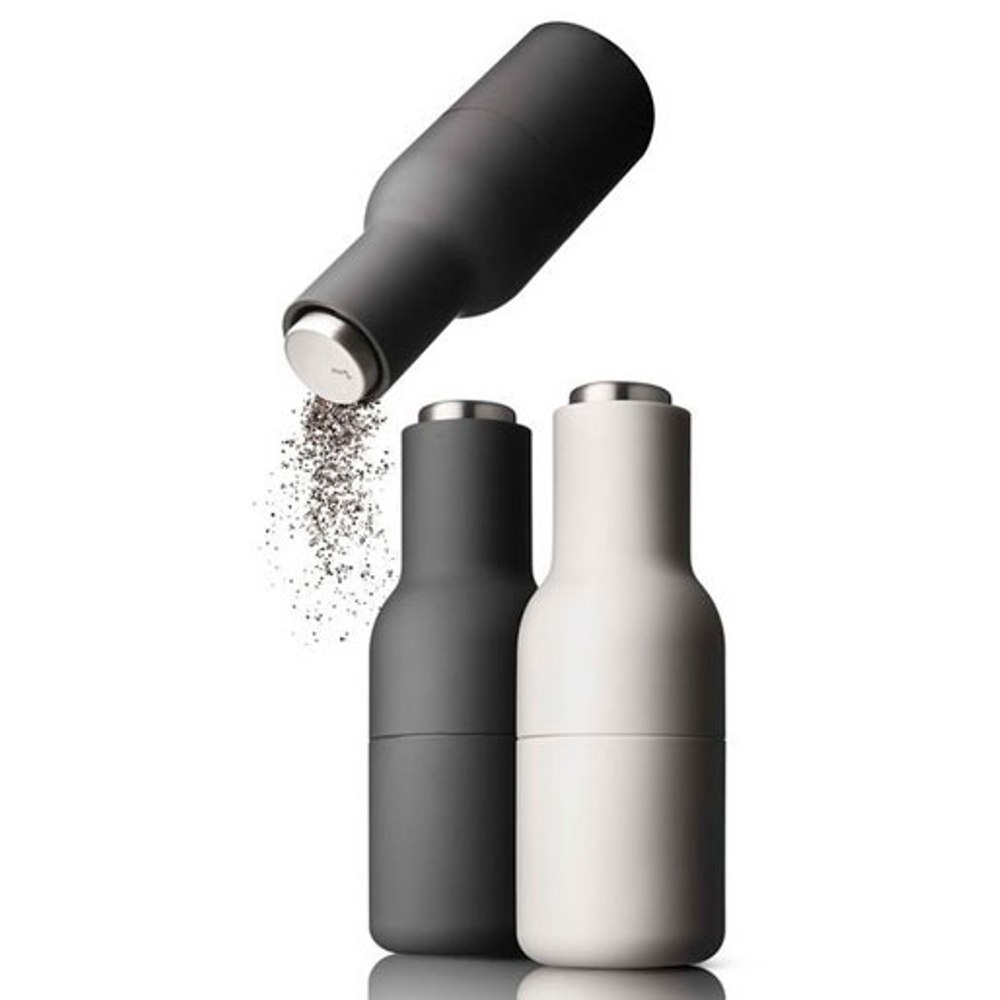 Bottle Grinder er et todelt sett med salt- og pepperkverner, hver utstyrt med en kraftig keramikkmølle som gjør det lett å male et bredt utvalg av krydder. Settet er formet som flasker som ligger komfortabelt i hånden, og tilbys i en rekke hardtarbeidende materialer og farger, inkludert Barley, en varm og beroligende nøytral som fungerer med ethvert kjøkkendesign. Enkel å betjene, fylle og rengjøre, den oppreiste designen sikrer at overflatene forblir fri for uønskede rester mens måltidene er krydret til perfeksjon.