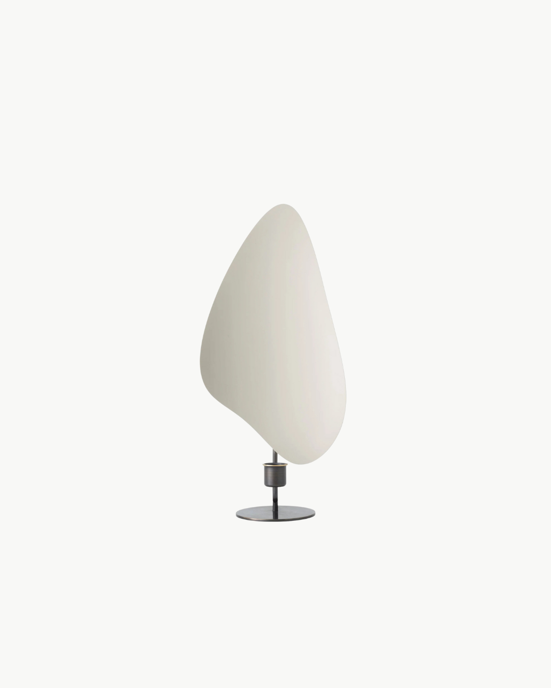 Inspirert av franske modernistiske lysarmaturer og designet for å ligne en flimrende flamme, er Flambeau et skulpturelt design med leken tilstedeværelse. Metallbakplaten forstørrer og reflekterer levende lys for å skape spennende skygger og en vakker atmosfære.
