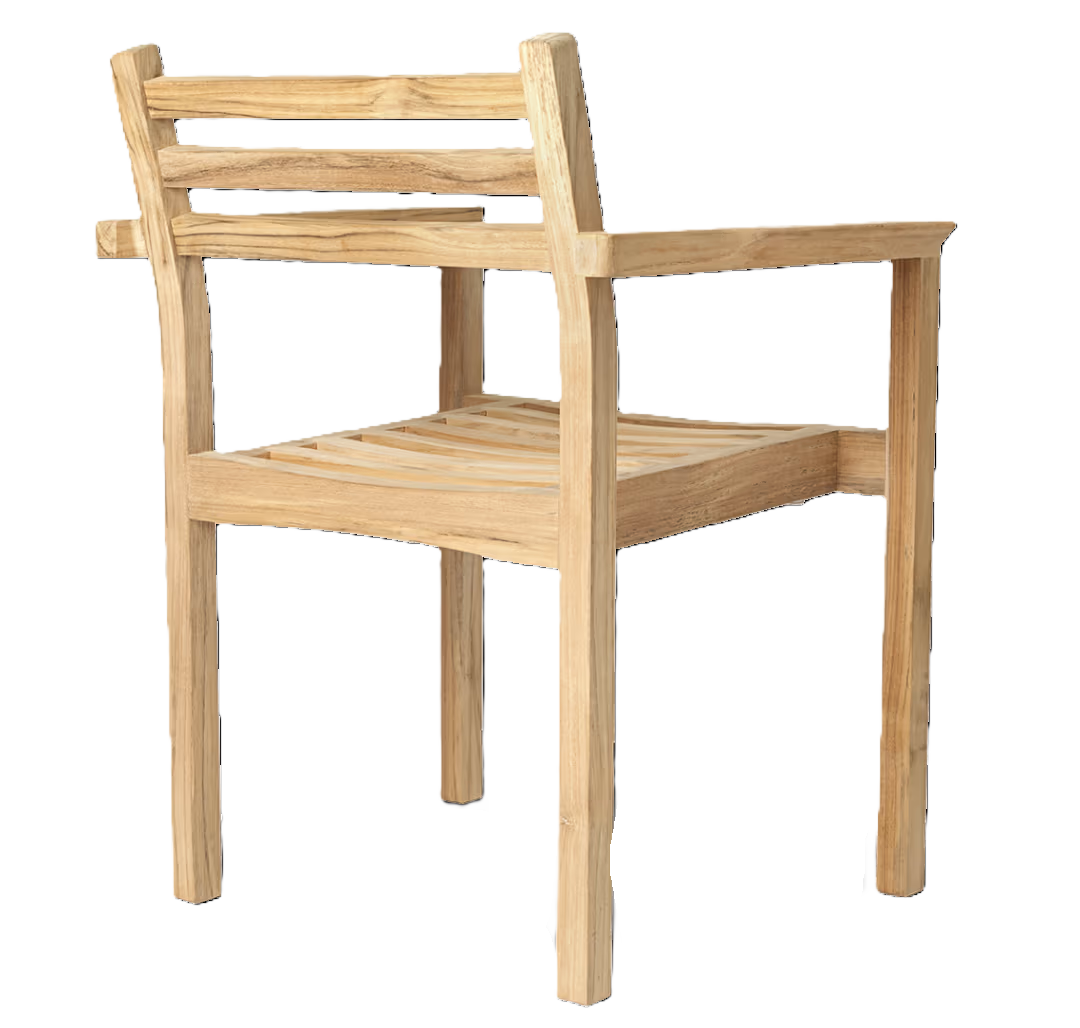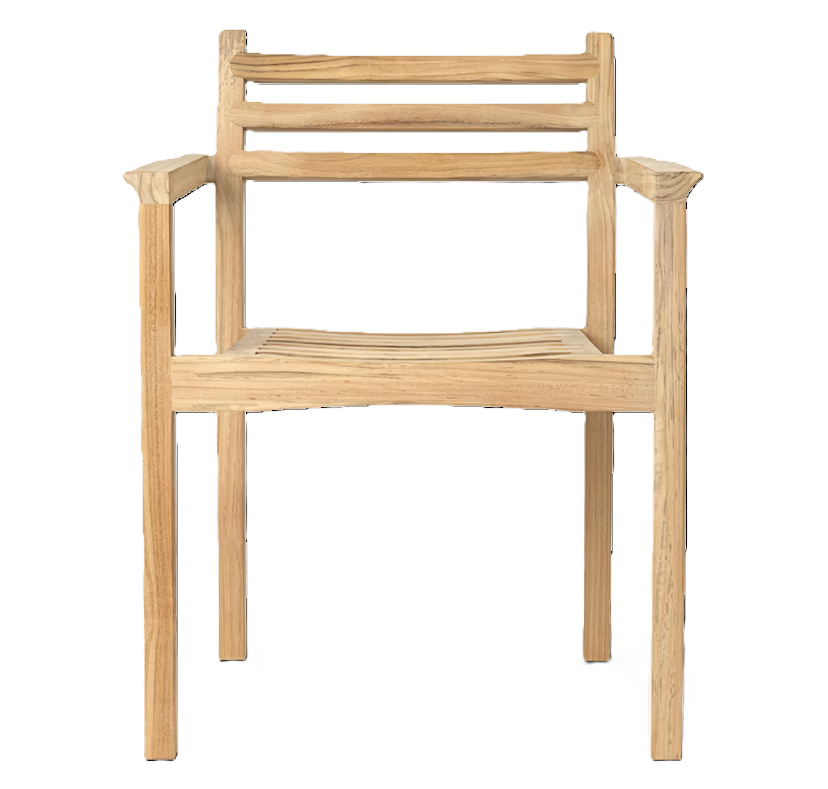 AH502 outdoor spisestol designet av Alfred Homann for Carl Hansen er laget av ubehandlet FSC-sertifisert teak som får en unik patina. Stolen kan stables og kan fås med armlene. Puter selges separat.