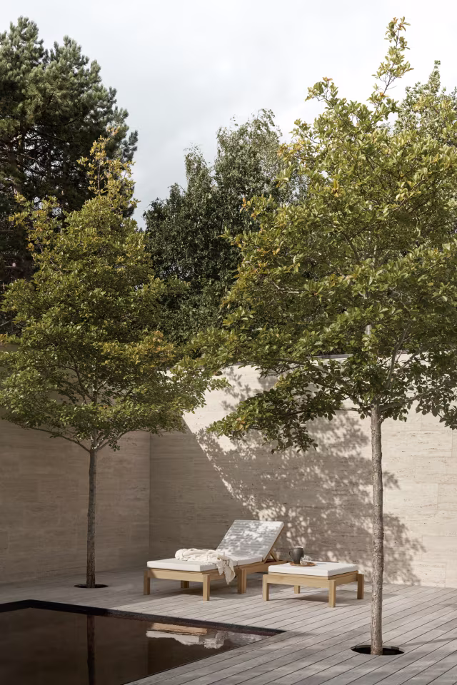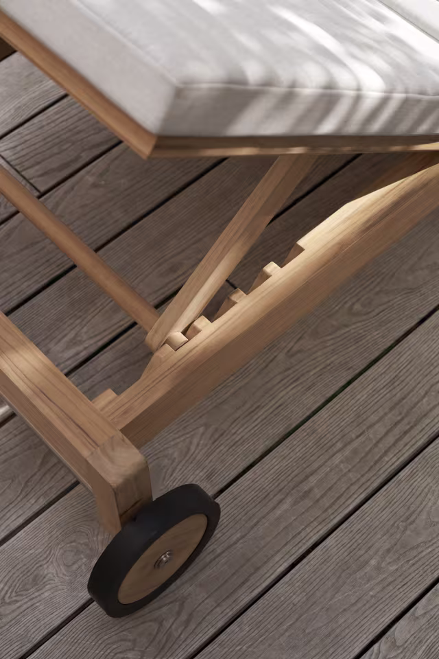 AH604 outdoor stol designet av Alfred Homann for Carl Hansen er laget av ubehandlet FSC-sertifisert teak som får en unik patina. Puter selges separat.