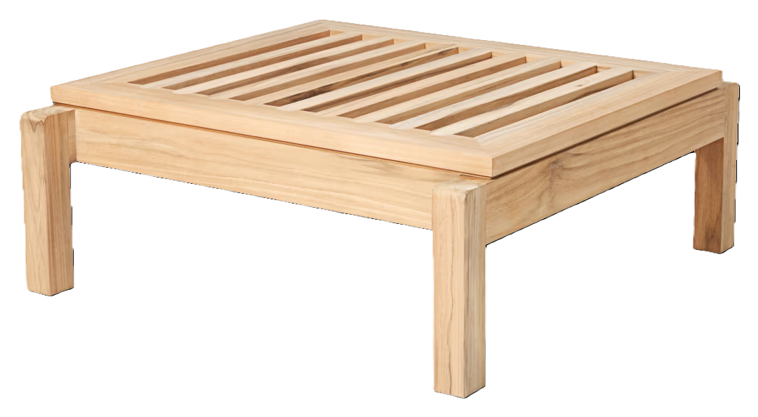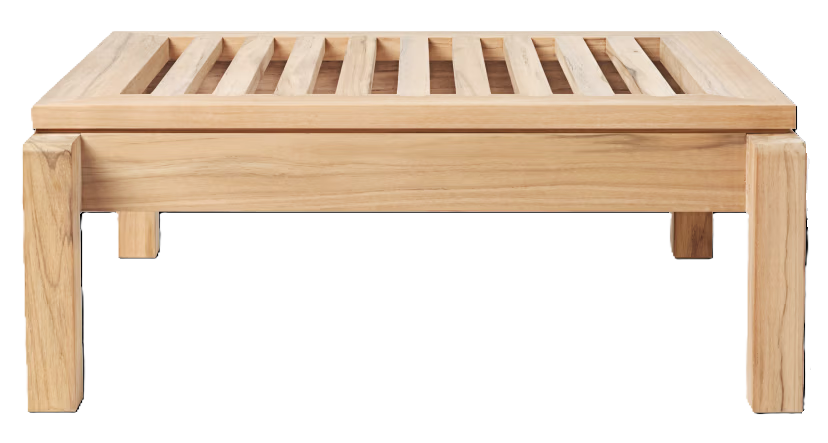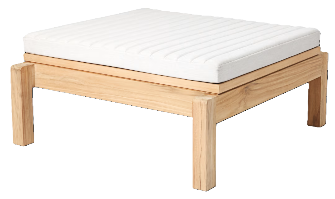 AH604F outdoor skammel designet av Alfred Homann for Carl Hansen er laget av ubehandlet FSC-sertifisert teak som får en unik patina. Puter selges separat.