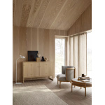 BM0057 skjenken er vakker fra alle vinkler, og settes sammen for hånd, en krevende prosess som kreves på grunn av arten av tapp- og skråskjøter, doble braketter og dører. Skjenken blander Mogensens rolige enkelhet med elegant funksjonalitet, og er et klassisk eksempel på utsøkt håndverk og praktisk perfeksjonisme som støtter hverdagen.