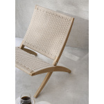 MG501 Cuba Chair er en skulpturell, sammenleggbar loungestol. Cuba Chair Outdoor er utviklet for utendørsbruk, laget av ubehandlet FSC™-sertifisert teak og et tett, værbestandig flatvevd tau. Stolen tilfører et moderne design til hager, balkonger og terrasser.