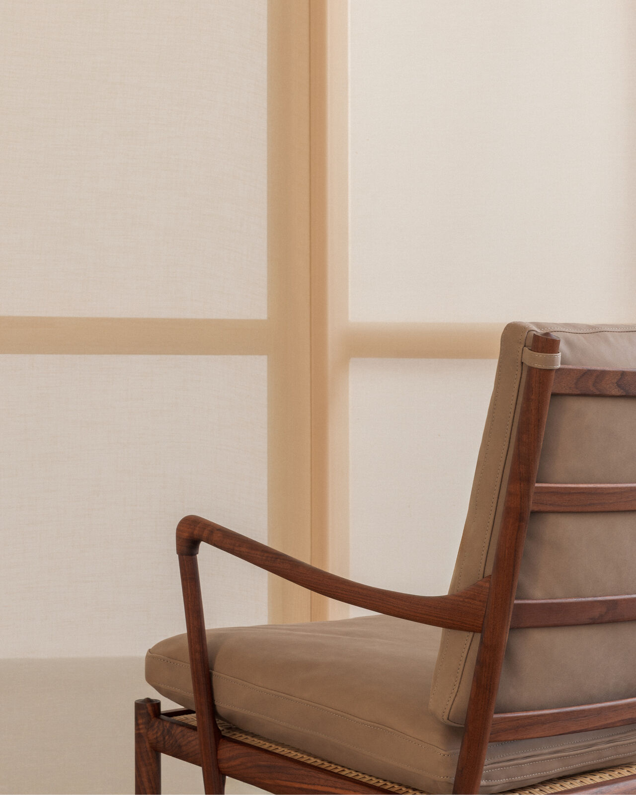 Som minimalist hadde Wanscher en forkjærlighet for slanke og raffinerte former. Til tross for stolens slanke dimensjoner er den ekstremt stabil, takket være nøye planlagt forsterkning i konstruksjonen. De sofistikerte, lett buede armlenene stiger elegant opp før de bøyer seg ned – et karakteristisk Wanscher-trekk. Stolens for- og bakben i rundstokke gir både styrke og estetisk finesse, der bakbenene er svakt utadbuede for ekstra stabilitet.