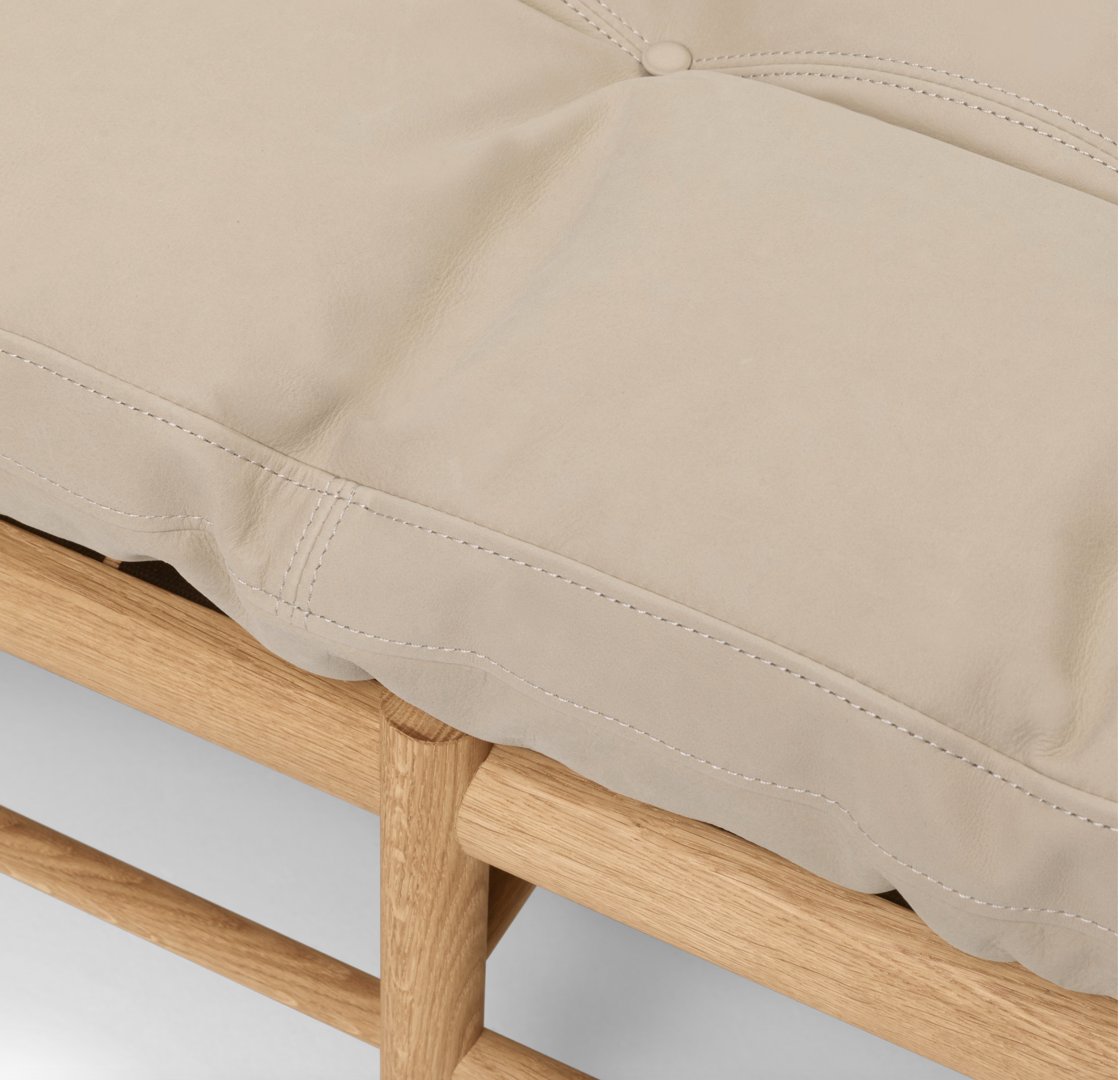 De håndsydde knappene danner et enkelt rutemønster som fremhever daybedens geometriske form, mens en valgfri nakkepute gir ekstra komfort og avslapning.