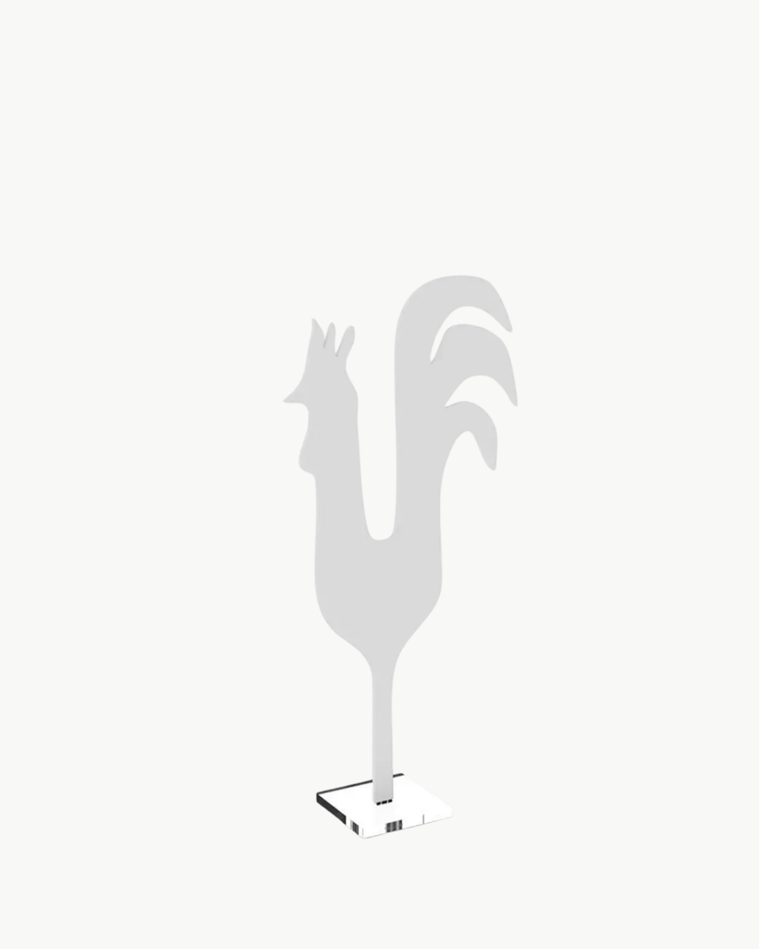 En stilren hane i akryl. Kjempefin på et sidebord, vindu eller kanskje på gulvet? Høyde 49cm.