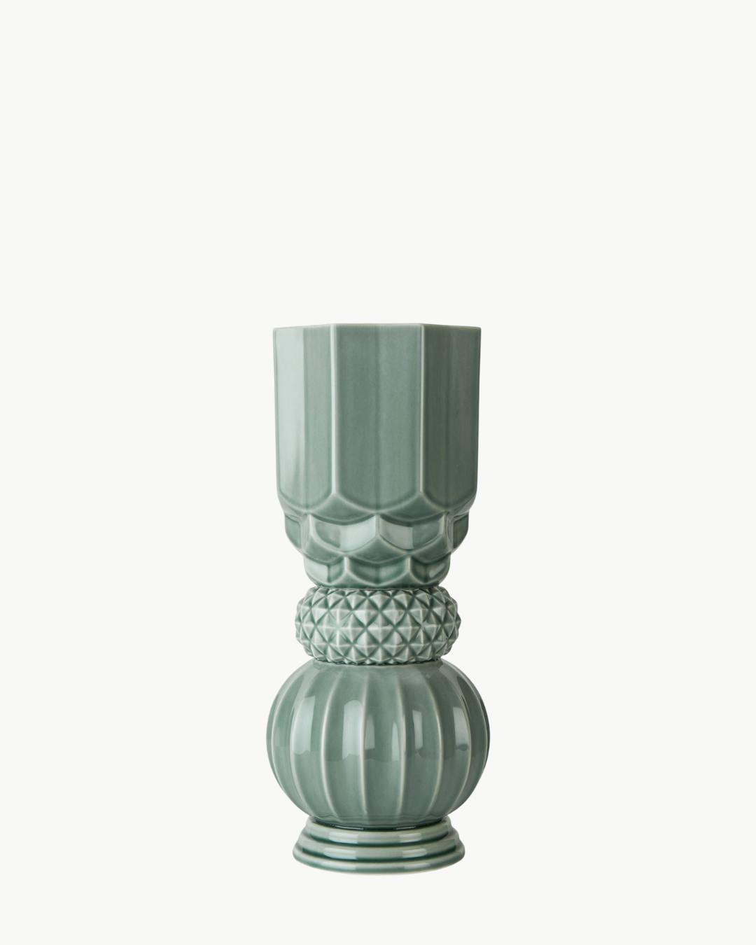 The shape of the Nuage vases made its first appearance in the oeuvre of Ronan and Erwan Bouroullec in 2002. Reminiscent of a cloud, it was originally produced as a plastic shelf module that can be grouped into clusters or large-scale configurations. Eight tubular cavities pierce the flat surfaces of the modular element while also defining the form's outer contours. Over the years, the Bouroullec brothers have varied this shape and repeatedly incorporated it in their graphic work. For the Nuage vase, the designers executed the cloud motif in extruded aluminium profiles of varying lengths. The cavities in the basic form are now positioned upright, dividing the vase into eight individual tubes that can be used for the artful arrangement of flowers and grasses. The undulating surfaces, with an anodised finish in various colours, produce an attractive interplay of light and shadow. Thanks to their precise outer contours, the vases can be fitted together to create entire 'cloud formations'. Material: anodised aluminium, rubber stoppers