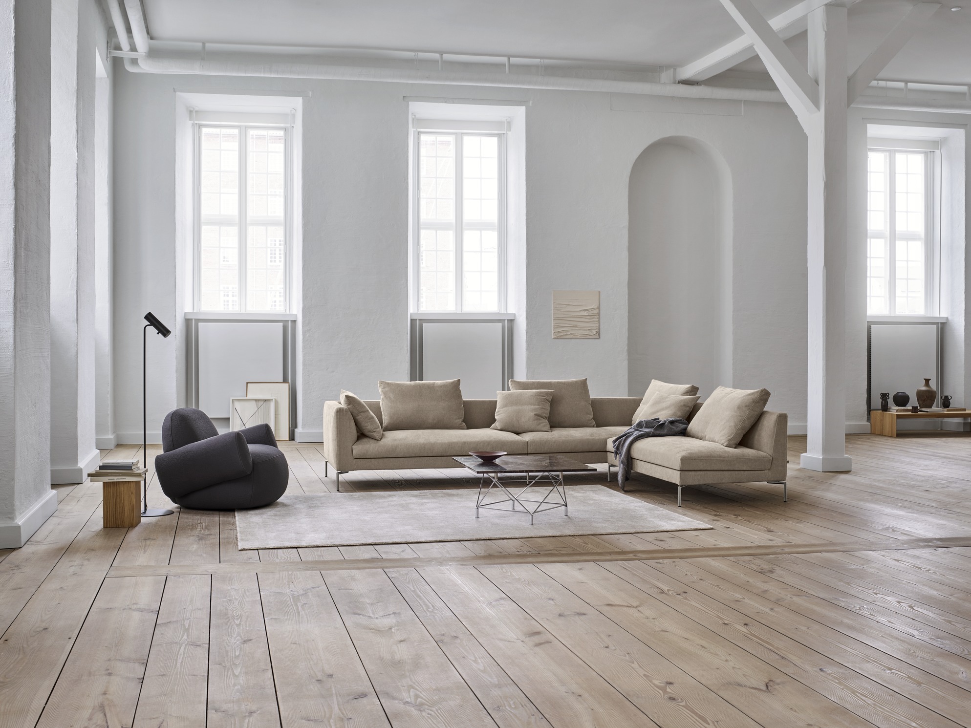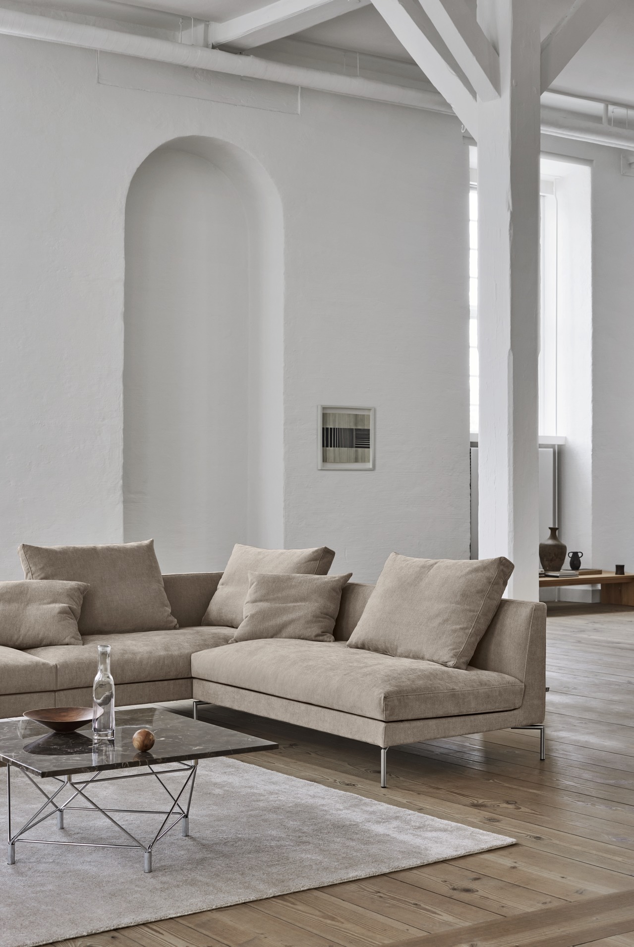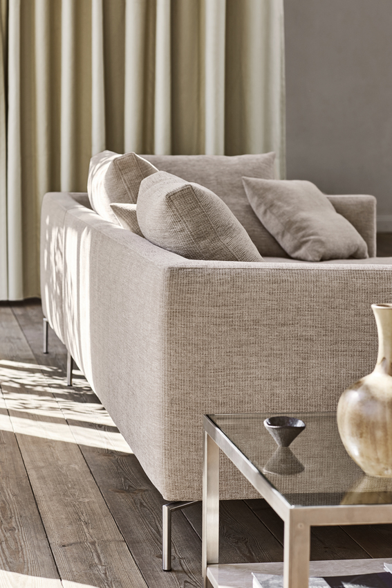 Kan fås med avtagbart trekk i stoff. Lær er alltid fastmontert.