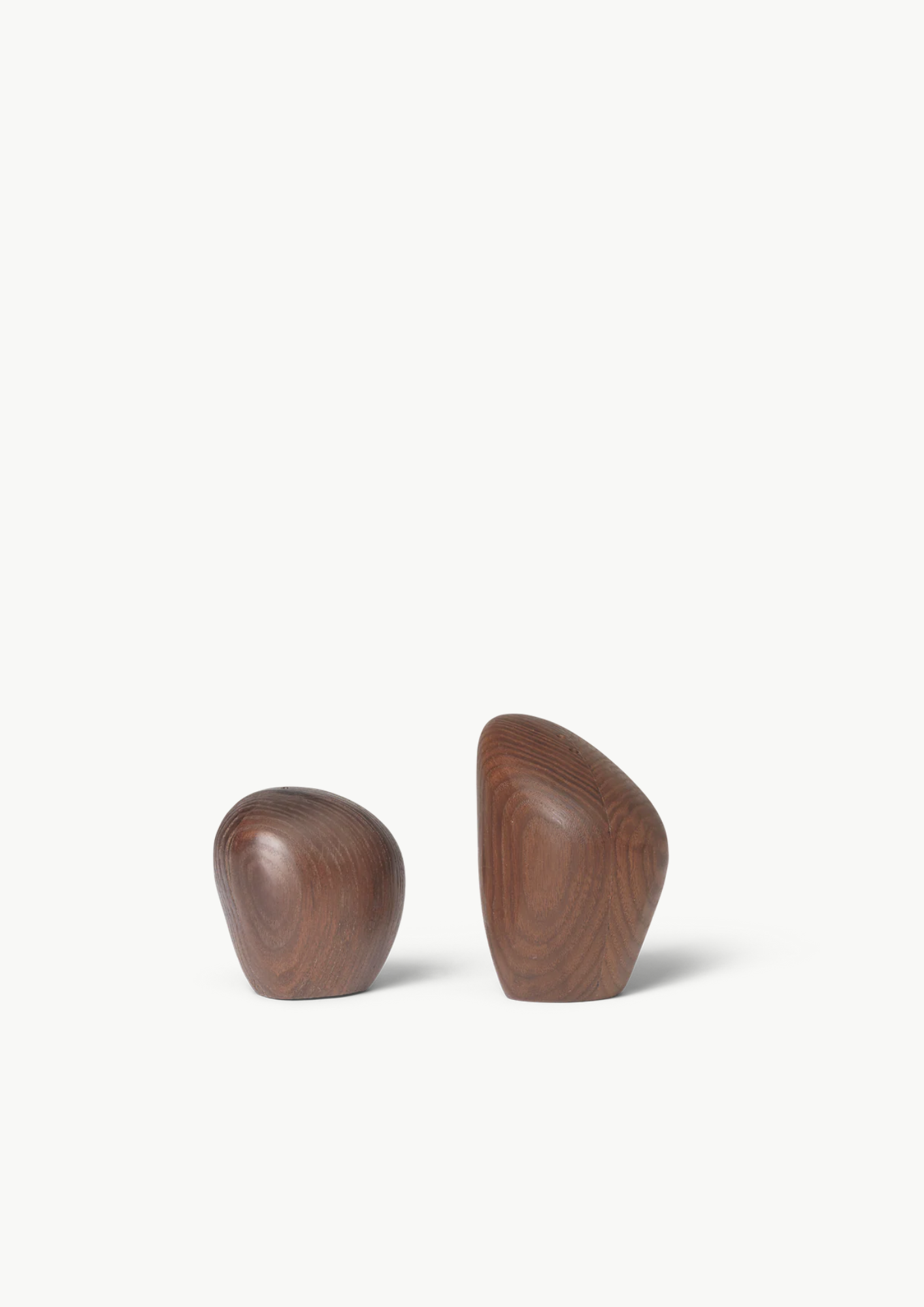 Dette Cairn-settet fra Ferm Living består av salt- og peppershakere med myke kurver og en skulpturell form, inspirert av varder. Shakerne er laget i FSC-sertifisert tre med en karbonisert mørkebrun finish, og gir et naturlig, varmt uttrykk på spisebordet. Basene har en gummipropp for enkel påfylling.