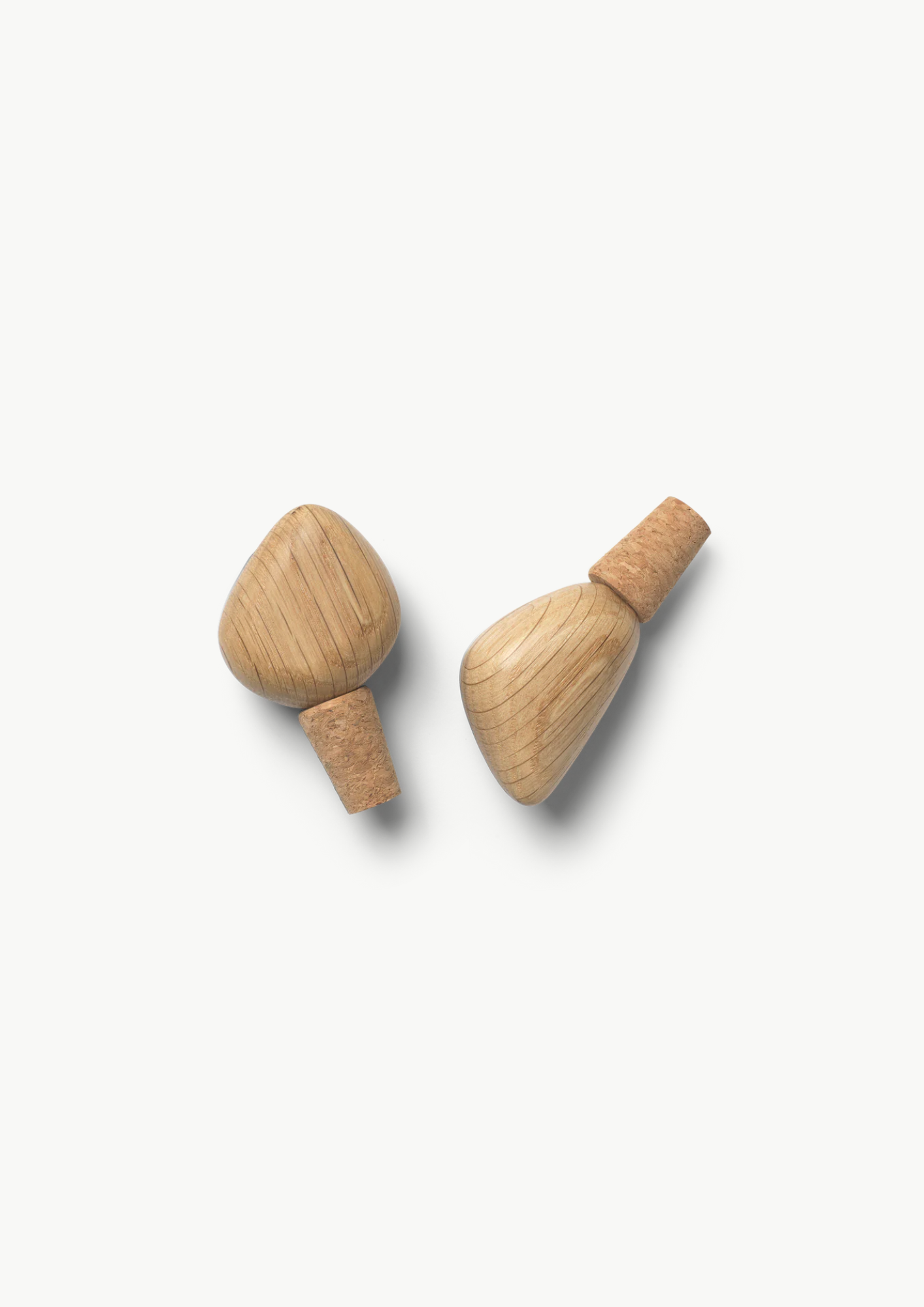 Cairn vinkorker fra Ferm Living kommer i sett på to og er inspirert av varder — små steinhauger i naturen. De er finskåret i FSC-sertifisert eik og har myke, organiske kurver. Korkene er laget av naturmaterialer og gir en estetisk og praktisk løsning for å forsegle vinflasker med stil.