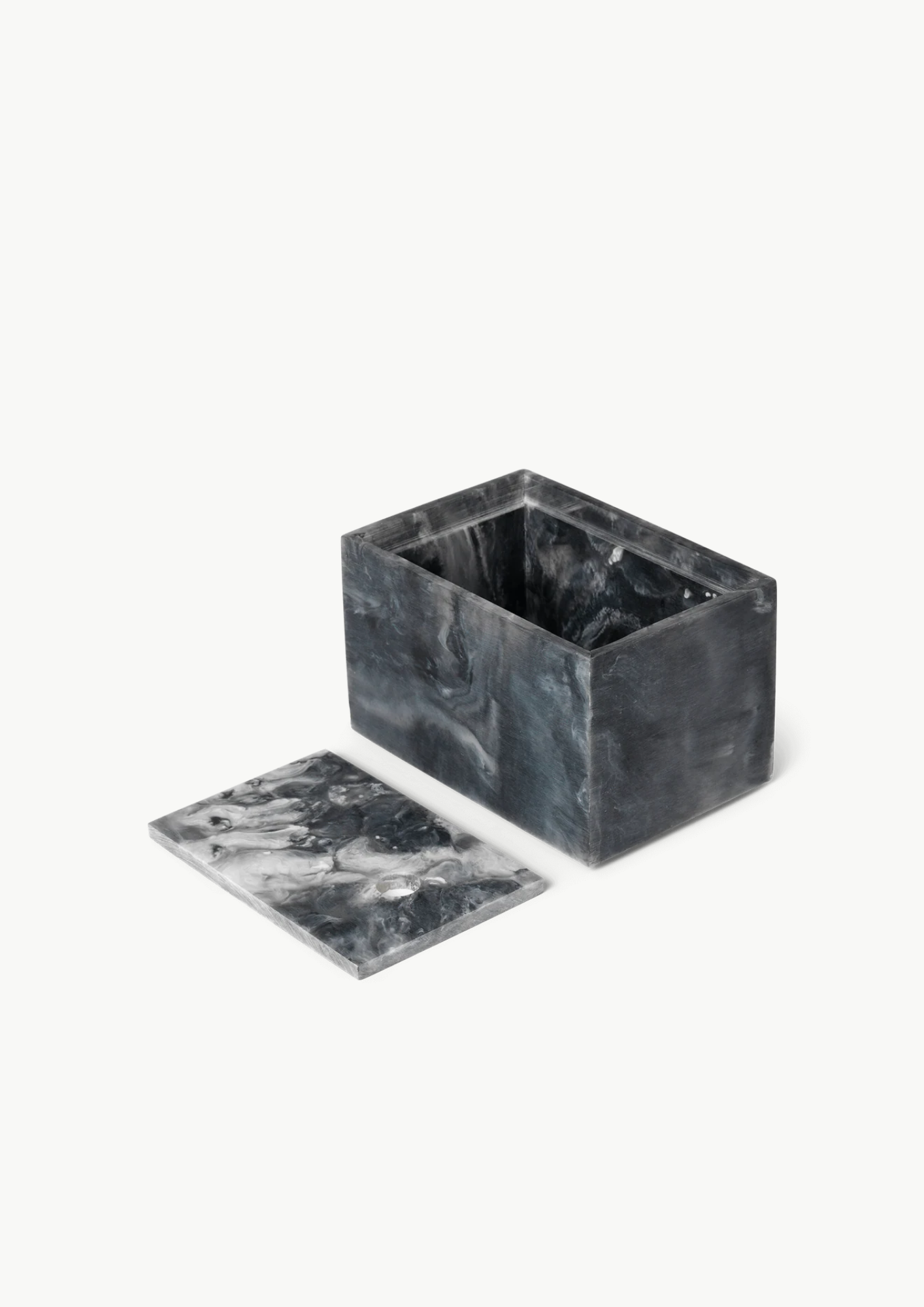 En større variant av Mist Box i den samme mørke harpikstonen, med samme skulpturelle, virvlende design. Perfekt for oppbevaring av større gjenstander, samtidig som den fungerer som et dekorativt objekt.