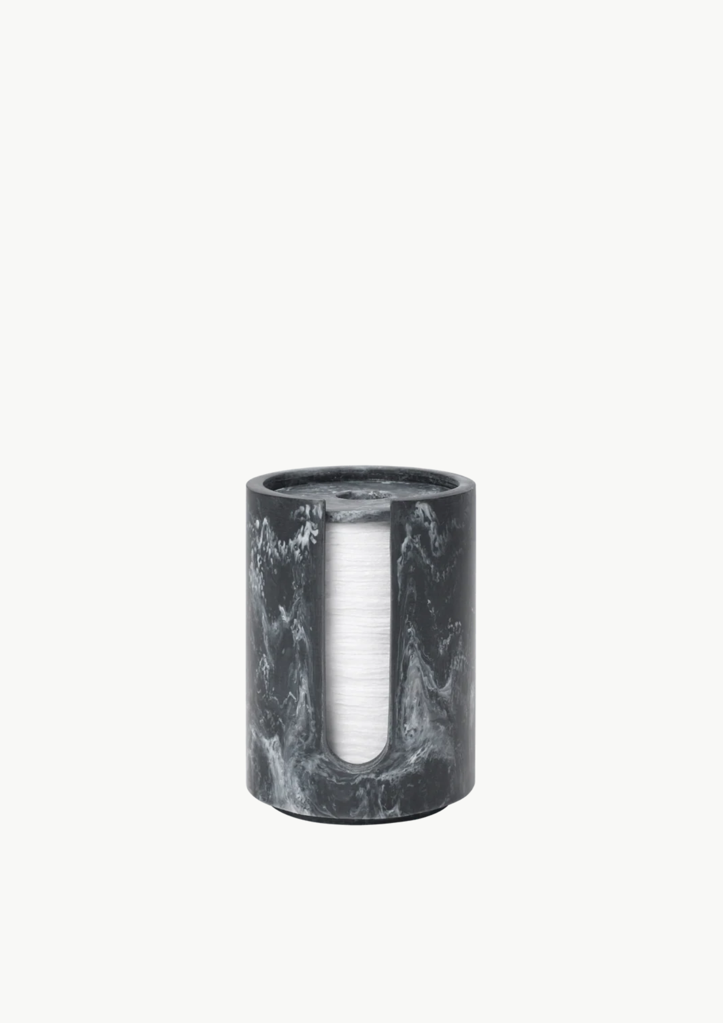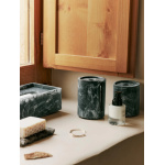 Mist Cotton Pad Holder fra Ferm Living er en stilren og funksjonell boks i harpiks, designet for oppbevaring av bomullspads. Den marmorerte Charcoal-fargen gir et rolig, steinlignende preg, og boksen har et kompakt og stabelbart design som utnytter plassen effektivt. Den passer perfekt på badet eller på sminkebordet.