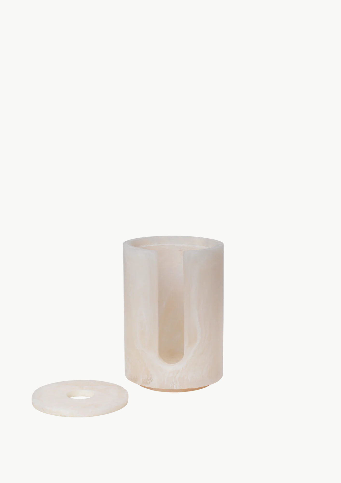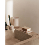 Mist Cotton Pad Holder fra Ferm Living er en stilren og funksjonell boks i harpiks, designet for å oppbevare bomullspads på badet. Den marmorerte “Pearl”-fargen gir et rolig, steinlignende preg, og boksen har et stabelbart, kompakt design som utnytter plassen effektivt.