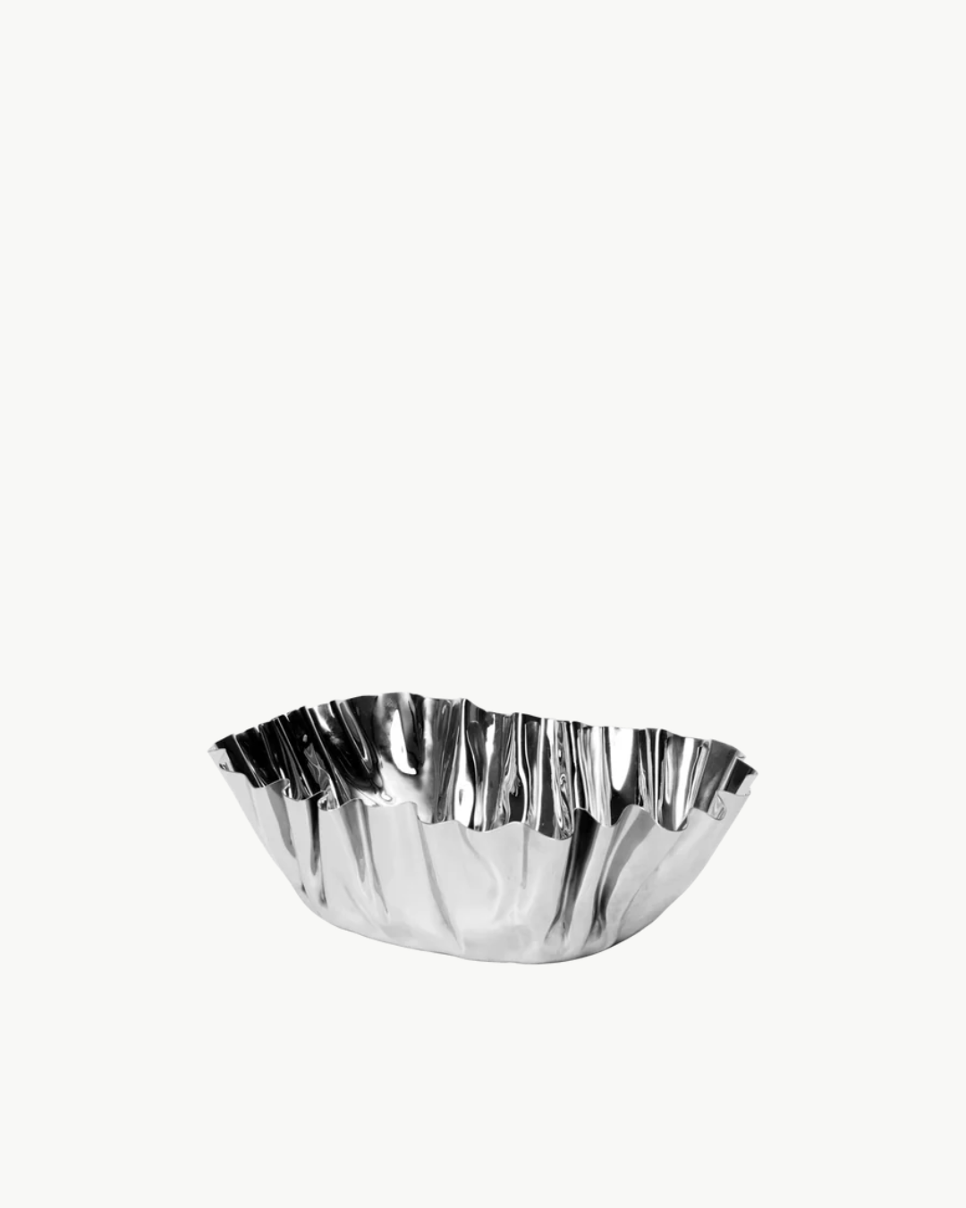 Tydra Bowl fra Ferm Living er en stor, elegant serveringsbolle med speilpolert finish som reflekterer lys og gir et sofistikert uttrykk. Den runde, skulpturelle formen gjør bollen like dekorativ som funksjonell, og den passer perfekt til salater, frukt eller som midtpunkt på bordet. Hver bolle har et raffinert, moderne preg og tilfører en luksuriøs detalj til interiøret.