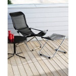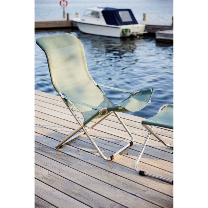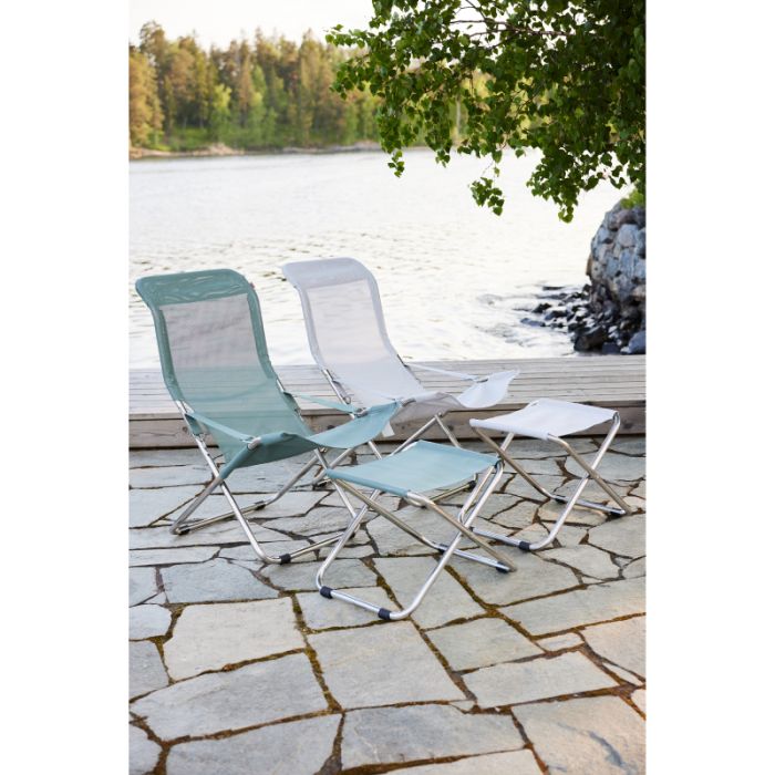 Fiesta Texfil er en komfortabel og stilren solstol som kombinerer funksjonalitet med tidløs eleganse. Den kan enkelt reguleres i tre posisjoner, den er produsert i aluminium og ruster derfor ikke. Setet er laget av slitesterk Texfil – et materiale som er lett å vedlikeholde og tåler både sol og regn. Med en løs soft-pute gjøres stolen enkelt om til en Fiesta Soft, og du får 2-1 stol.