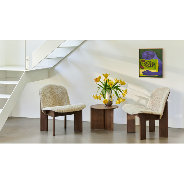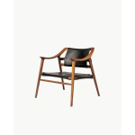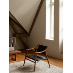 Utført i massivt valnøtt, med sete og rygg i vakkert brodert skinn, kombinerer Bambi Lounge klassisk håndverk med moderne uttrykk. Stolen er bredere, dypere og mer skulpturell enn sine søsken i Bambi-serien – et blikkfang i ethvert rom.