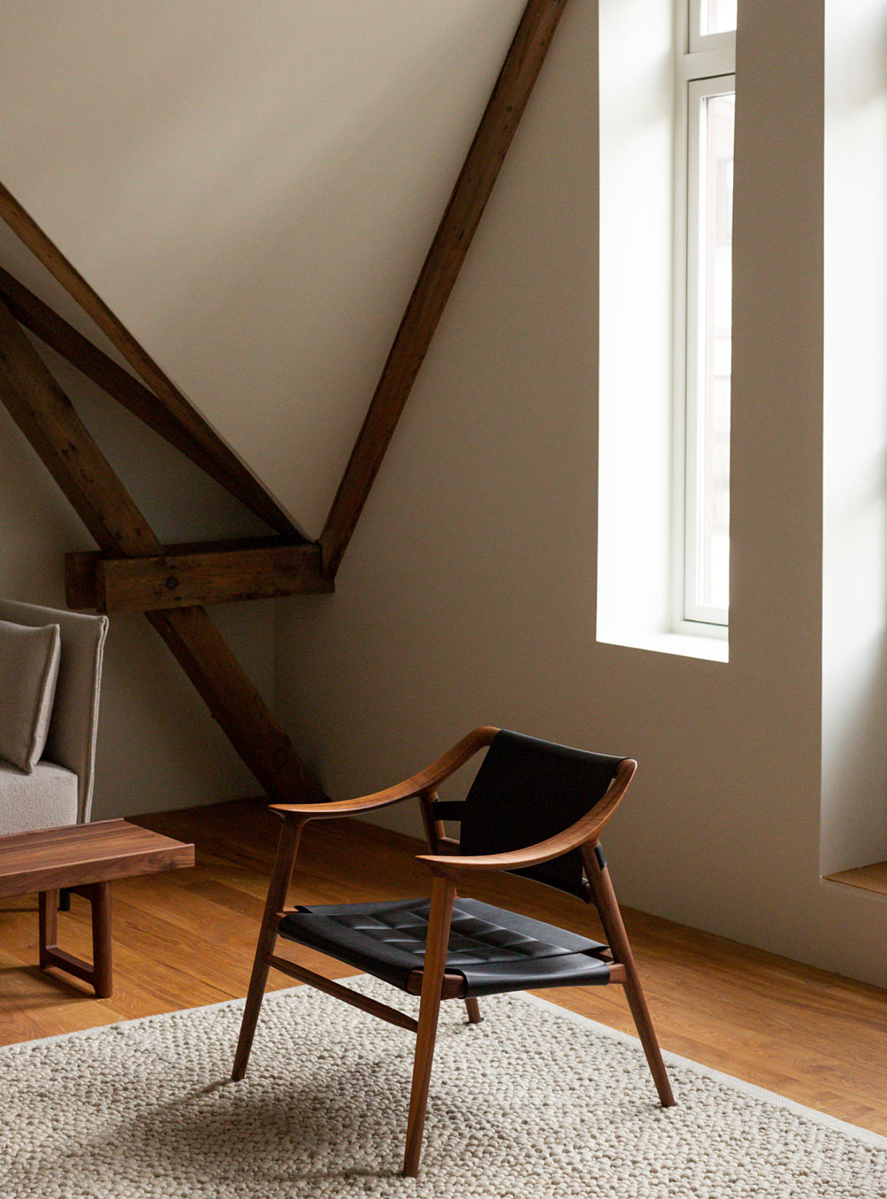 Til tross for sitt markante uttrykk, oppleves stolen luftig og komfortabel, med en ergonomisk utforming som inviterer til ro og refleksjon. Et mesterverk i balansen mellom form og funksjon – og et bevis på at god design aldri går av moten.