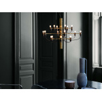 2097/30 (clear bulbs) Sarfatti er en lysekronen fra Flos har et ikonisk design med moderne, industrielle betoninger. Den har atten armer med dimmebare LED-lyskilder som sprer et diffust og omgivende lys. Den har en konstruksjon i stål med armer i messing og en lang ledning for fleksibel opphengning. Egnet til både private og offentlige omgivelser.