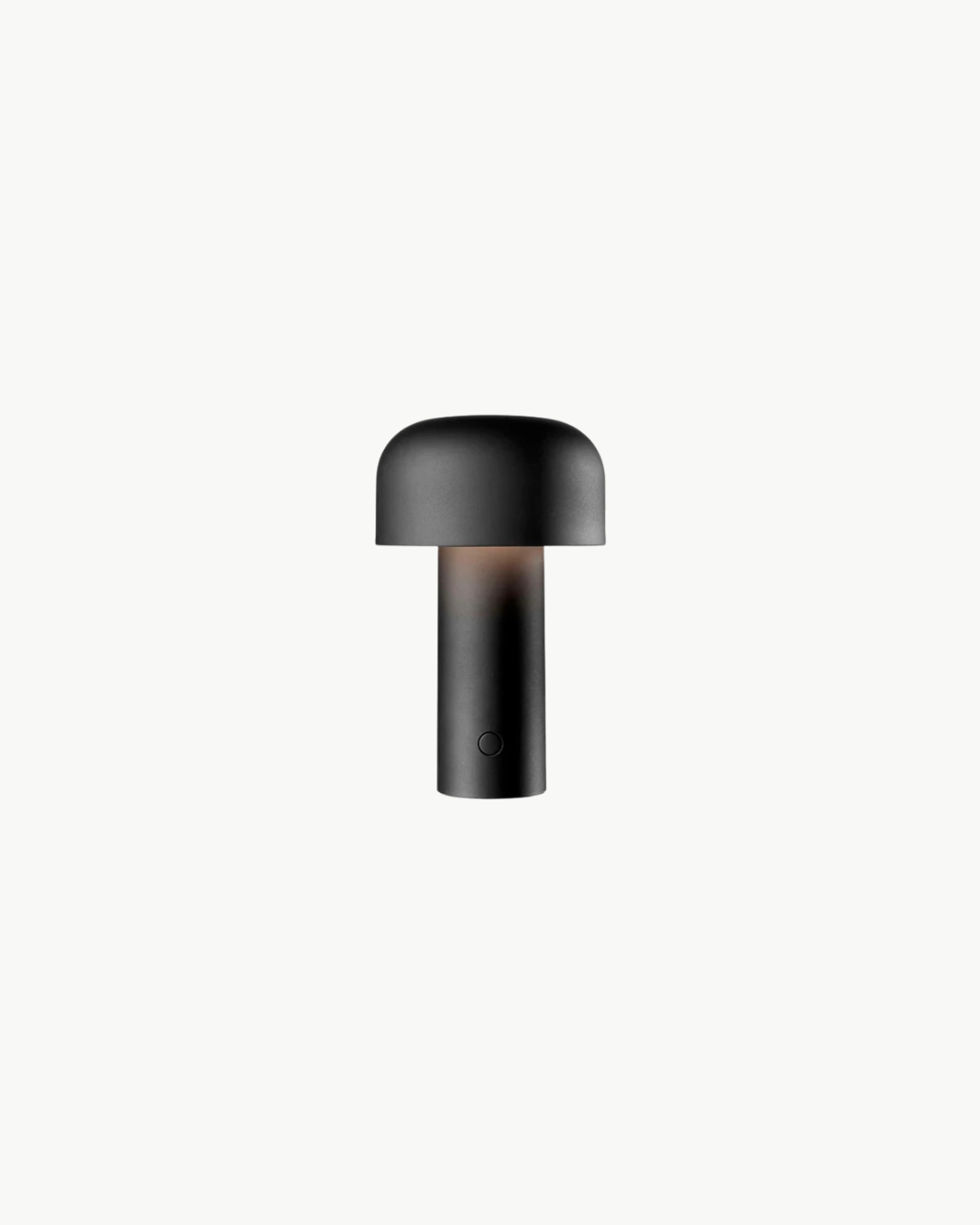 Bellhop bordlampe fra Flos har et kult design, å enkelt å flytte rundt i hjemmet. Lampen er inspirert av den berømte «Bellhop-bjellen», kjent fra innsjekking på klassiske hoteller. Lampen er dimbar og kan stilles inn på 4 ulike lysstyrkenivåer. Den har en innebygd LED-lyskilde. Bellhop er selvsagt trådløs, lades via en medfølgende Micro-USB-C-kabel og kan kontrolleres for strømnivå på undersiden av lampen.