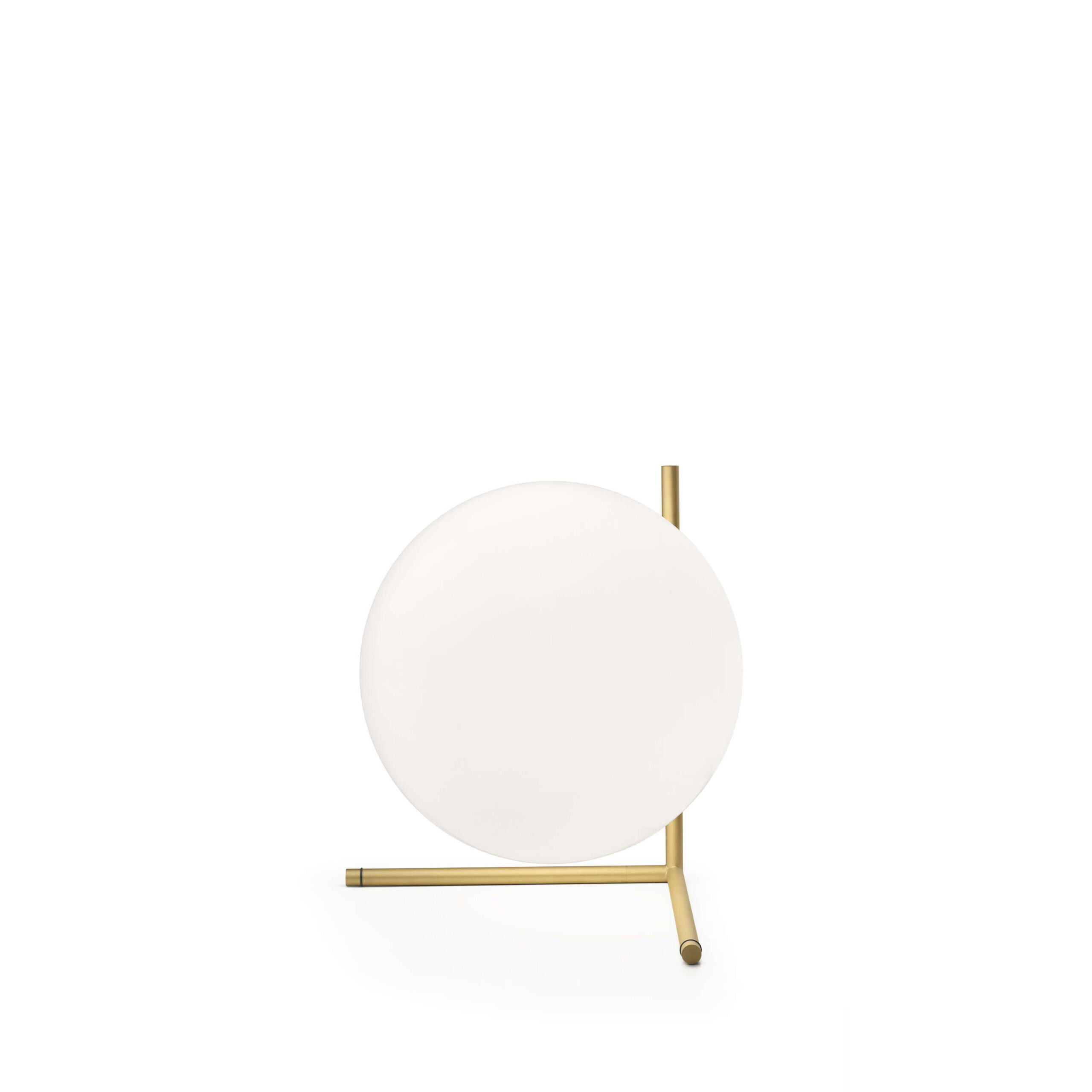 Bordlampen IC T1 lav sprer en diffus og myk glød og passer perfekt både i hjemmet og i offentlige miljøer. Lampen er laget av to håndblåste opalglass som balanserer på en stang bestående av enten messing eller stål.