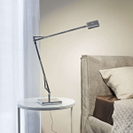 Kelvin Bordlampe i LED er en vakker og funksjonell lampe som passer hjemme eller på kontoret. Lampen har asymmetrisk lys og tiltbart lampehode.