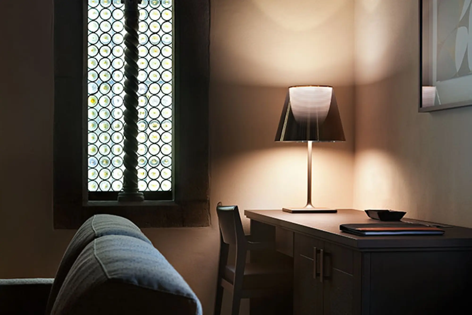 Bordlampen Ktribe T2 avgir et lett og behagelig lys som også er dimbart. Lampens smarte og stilrene design passer perfekt til plassering i både private hjem i stuen, på soverommet eller i gangen, alternativt i offentlige omgivelser.