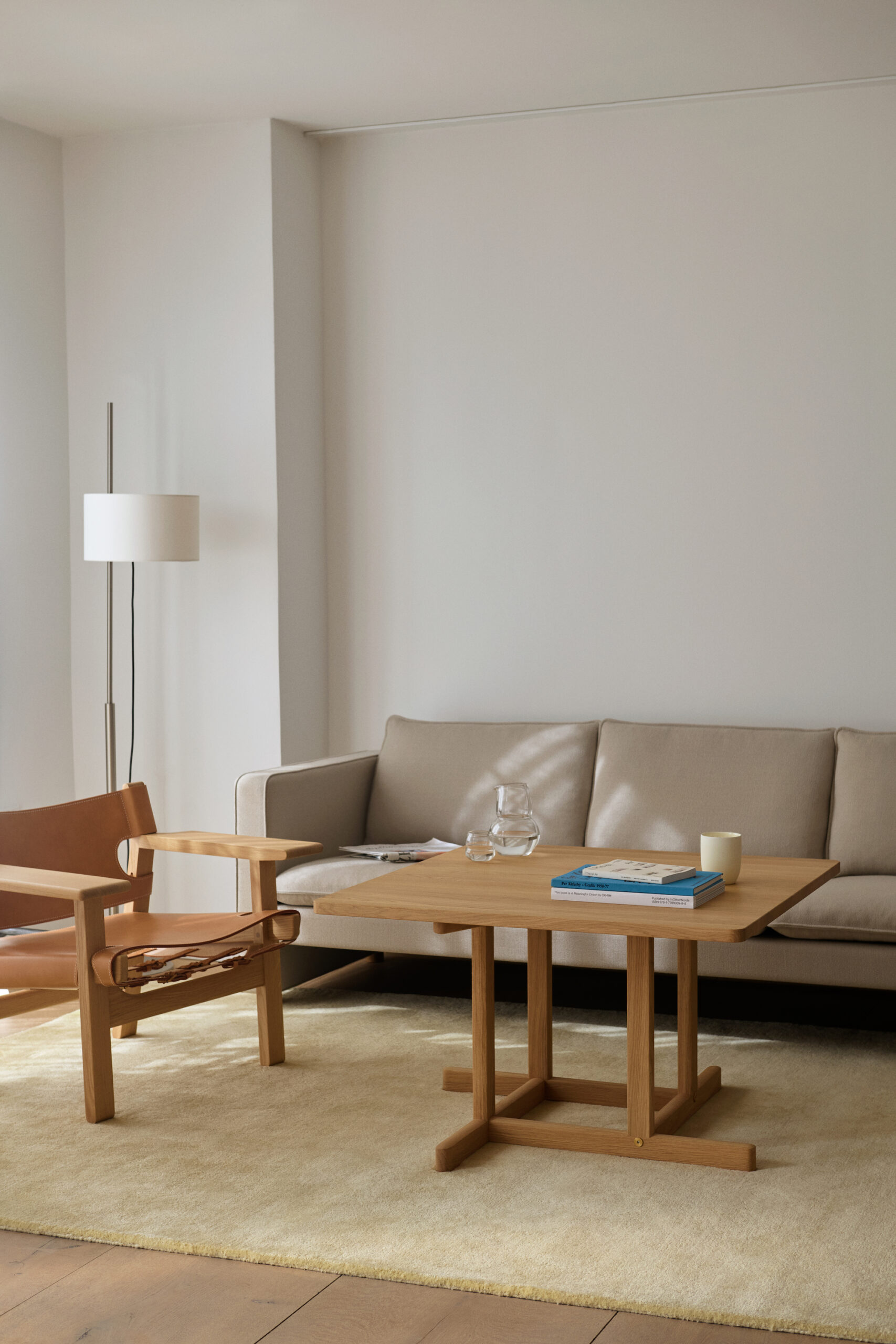 BM80 er et ærlig og harmonisk sofabord i heltre eik, opprinnelig designet av Børge Mogensen i 1961. Inspirert av den amerikanske Shaker-tradisjonen kjennetegnes bordet av et rent og balansert uttrykk, med gjennomtenkte detaljer som forskjøvede sammenføyninger og den synlige messingskruen som presist forankrer konstruksjonen.