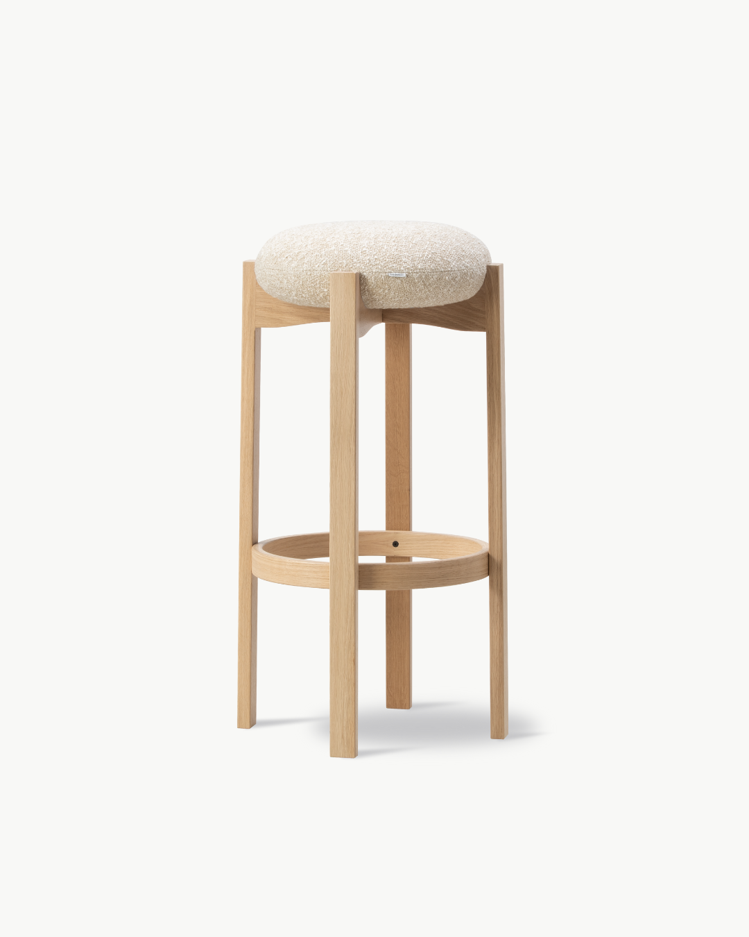 Krakken består av fire vertikale treben, samlet i en raffinert krysskomposisjon med utsøkte innfreste detaljer. Den lette, polstrede setet hviler elegant på rammen, og en tilsvarende detalj på undersiden forsterker det helhetlige uttrykket.