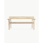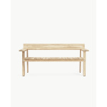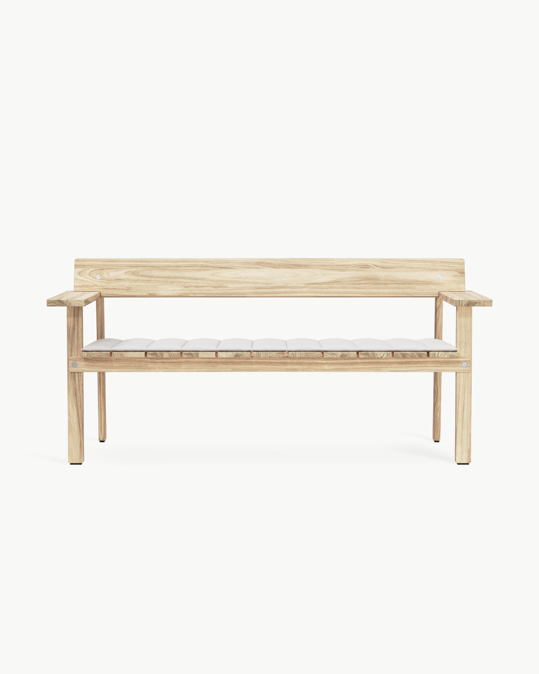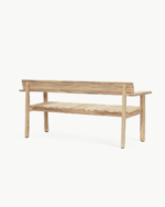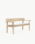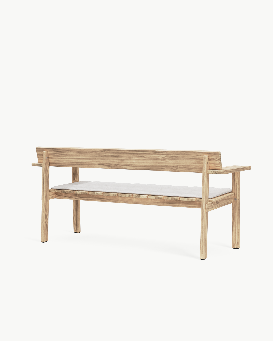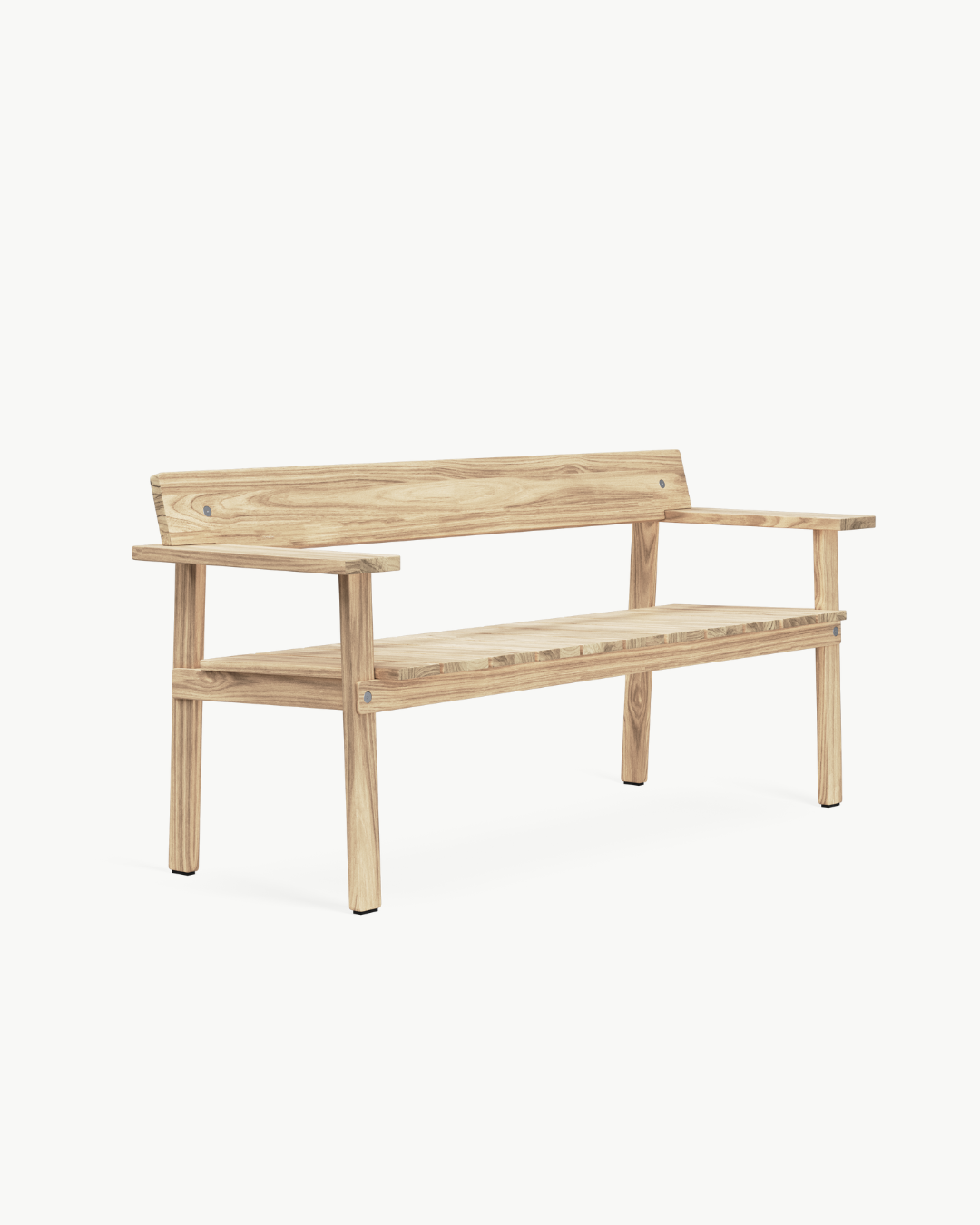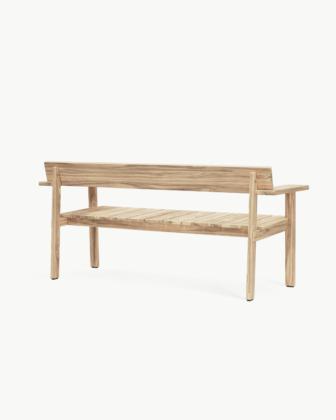 Navnet «Timbur» betyr tre på islandsk, og benken er laget av FSC™-sertifisert, ubehandlet teak – et slitesterkt treslag som utvikler en vakker, sølvgrå patina over tid. Det flate, modulbaserte designet er redusert til det helt essensielle, med fokus på skjønnheten i skjøtene og teakens naturlige karakter. Den generøse sitteflaten, lett skrånende ryggstøtten og de brede armlenene – som også fungerer som små sidebord – gjør benken ideell for både avslapning og sosialt samvær utendørs.