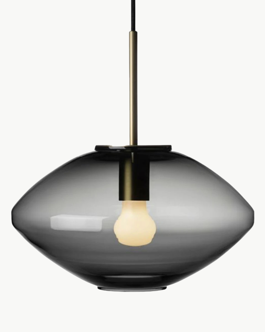 Konsept: Armaturen sender ut et mykt og komfortabelt lys. Glasset er laget for å gi en jevnt opplyst overflate. Den munnblåste opale glass skjermen med tre lag har en gjennomsiktig kant som gir en dekorativ lysglorie rundt armaturen.