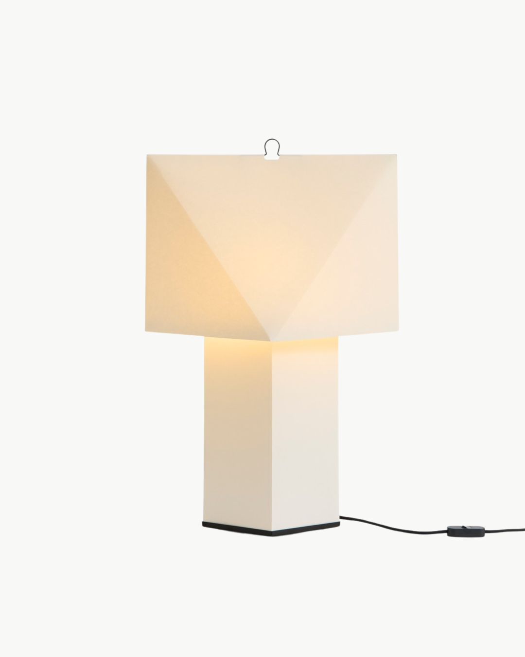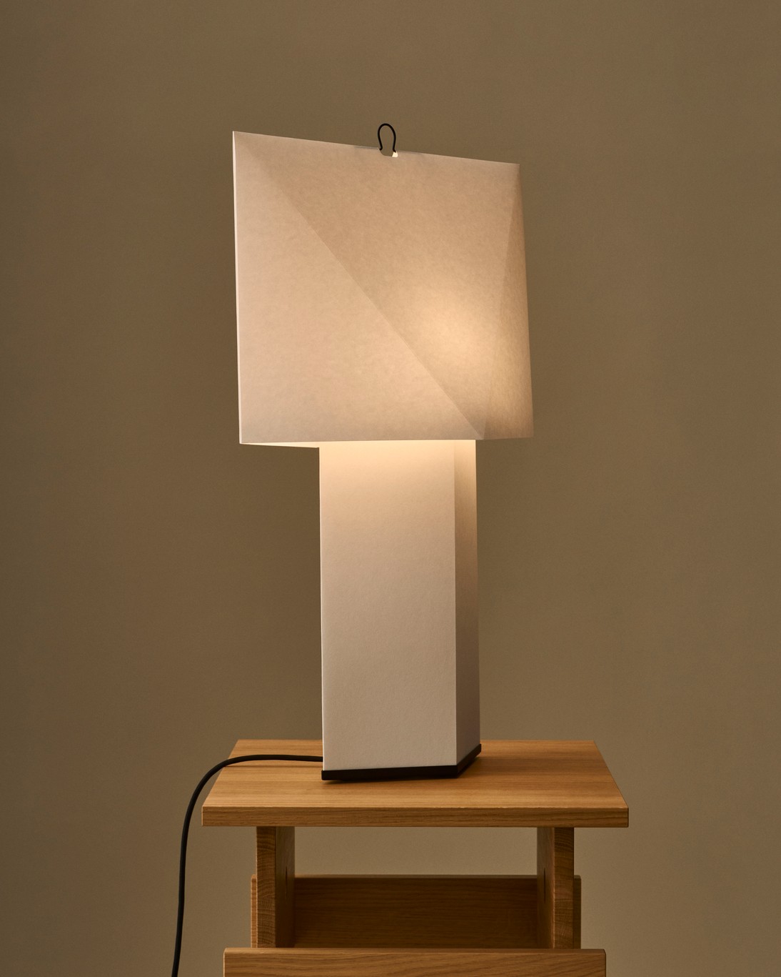 Den diffuse papirflaten gir et mykt, stemningsfullt lys, likt stearinlys, som tilfører varme og atmosfære til rommet. Den minimalistiske konstruksjonen og den diskrete metallkroken gjør lampen lett å flytte dit hvor lys trengs. Lampen finnes i to størrelser og kan plasseres på bord, hyller, vinduskarmer eller som gulvlampe i alle typer rom.