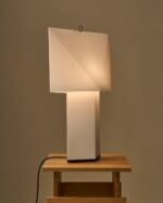 Aplat Table Lamp, designet av det franske duoen CPRV (Camille Paillard & Romain Voulet), er en lett og skulpturell bordlampe laget hovedsakelig av foldet papir. Lampen har et flatpakket design som settes enkelt sammen av brukeren, der presise linjer og vinkler skaper en enkel og grafisk form med volum.
