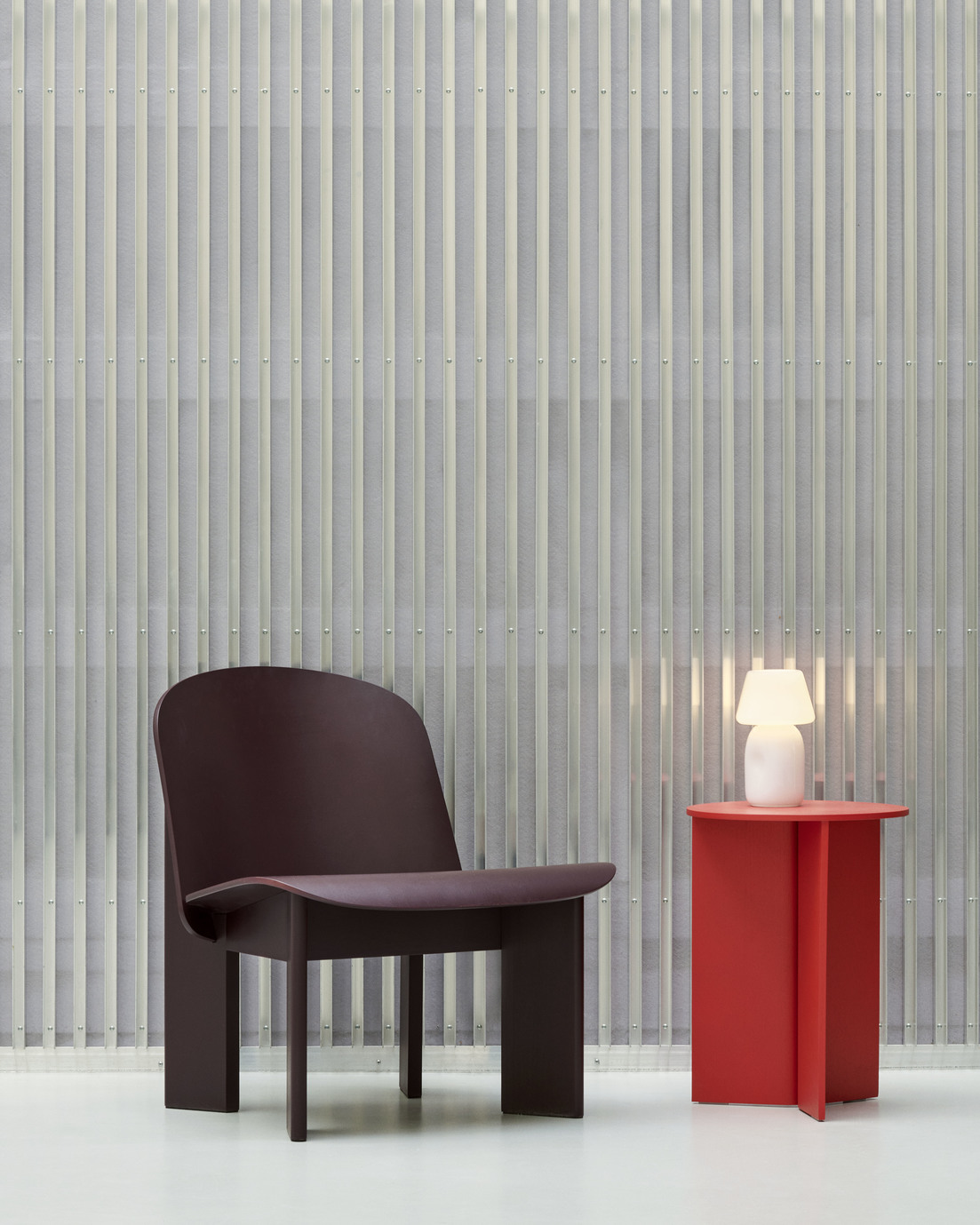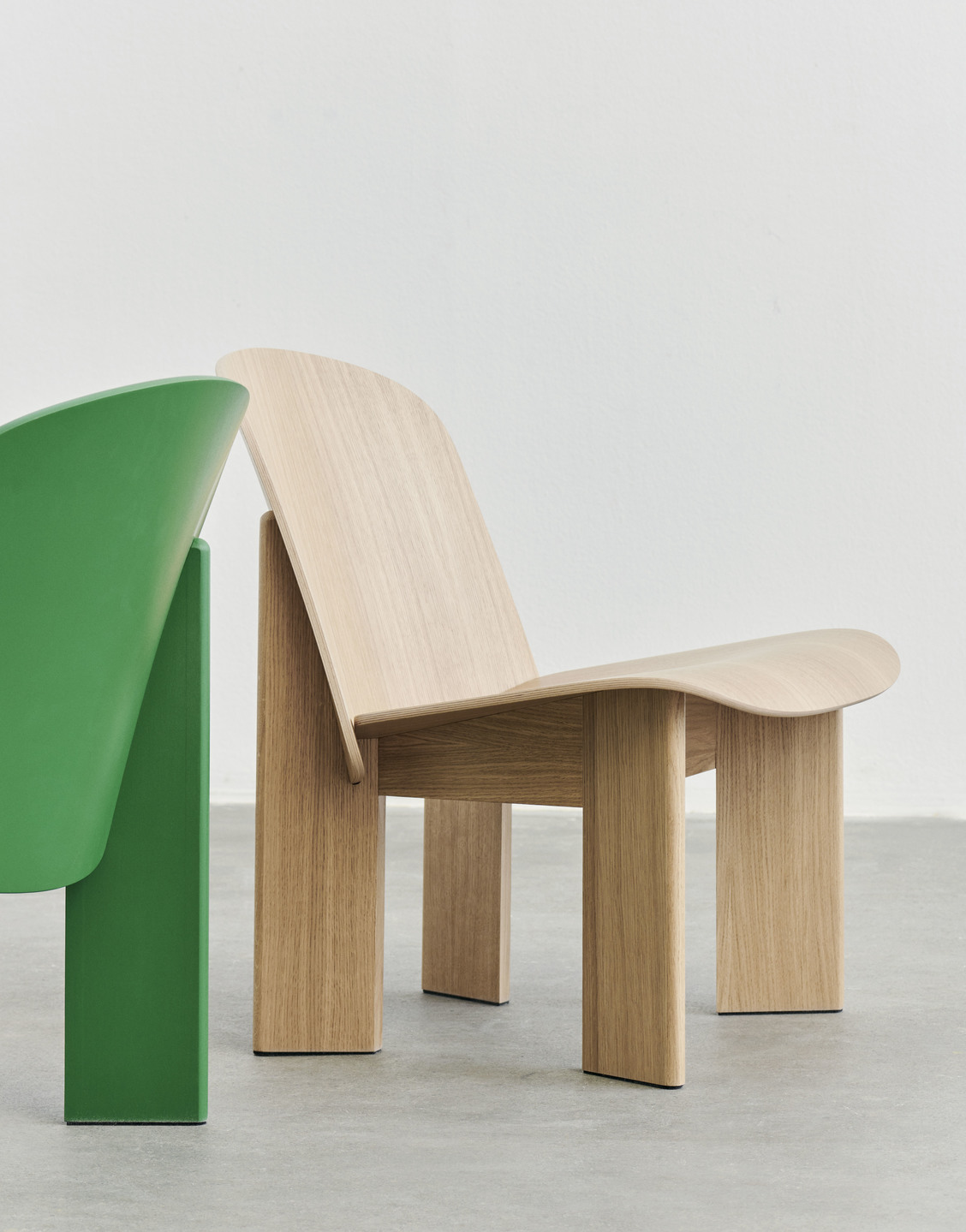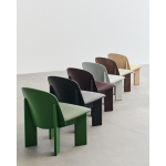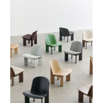 Designet for HAY av den norske designeren Andreas Bergsaker, er Chisel Lounge Chair en moderne, men tidløs versjon av den stadig relevante støpte kryssfinerstolen. Oppkalt etter det klassiske snekkerverktøyet, ble Chisel skapt fra ønsket om å designe en solid trestol med en særegen silhuett som ville stå tidens tann. Utviklet med optimal håndverk og ergonomi i tankene, gir stolens myke, organiske sete og rygg god støtte på en visuelt innbydende måte, supplert med vinklede ben som gjenspeiler meiselreferansene med sine karakteristiske skråkanter. Chisel Lounge Chairs brede utvalg av tretyper, farger og frontpolstringsalternativer, kombinert med dens kompakte størrelse, gjør den ideell for bruk i de fleste hjemlige og offentlige miljøer, fra stuer og soverom til venterom, lobbyer og biblioteker.