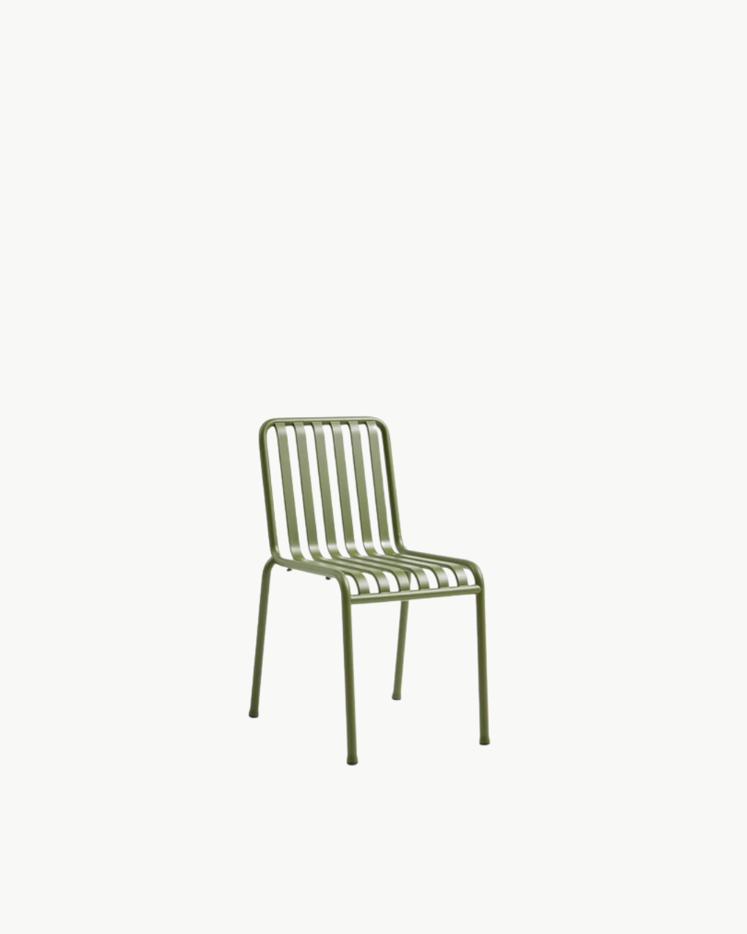 Palissade Chair, designet av Ronan og Erwan Bouroullec, er en elegant og funksjonell stol fra HAYs Palissade-serie. Med sitt enkle, symmetriske design og grafiske uttrykk, passer denne stolen sømløst inn i både naturlige og urbane omgivelser, og gir et moderne preg til ethvert utendørsområde.