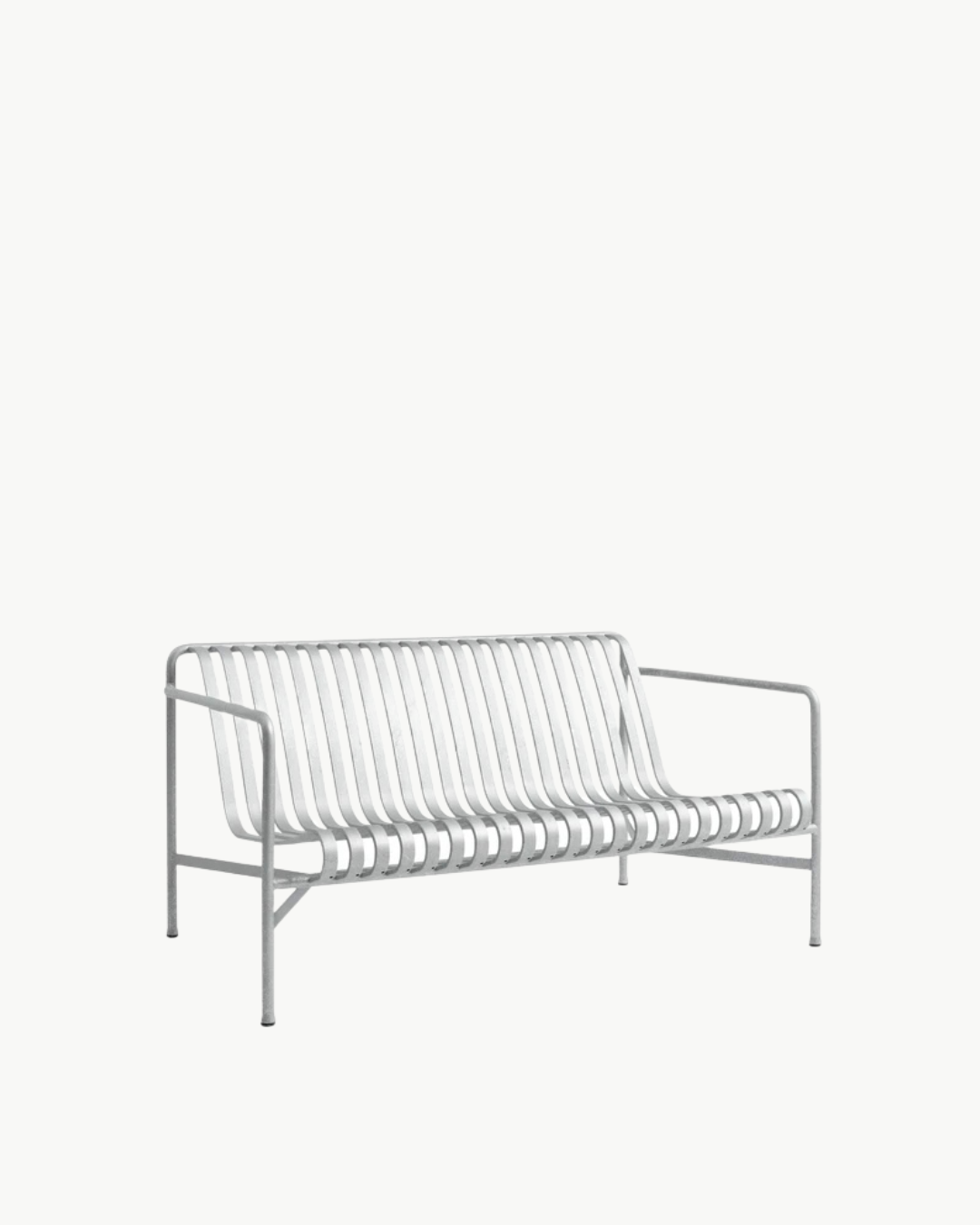 Palissade Lounge Sofa, designet av Ronan og Erwan Bouroullec, er en del av den anerkjente Palissade-serien for HAY. Denne elegante og komfortable lounge-sofaen er laget for å tilby både stil og holdbarhet i utendørsrom. Den er bygget med en pulverlakkert stålramme, eller varmgalvanisert stål, som gir utmerket beskyttelse mot rust og er perfekt for utendørsbruk i varierende værforhold.