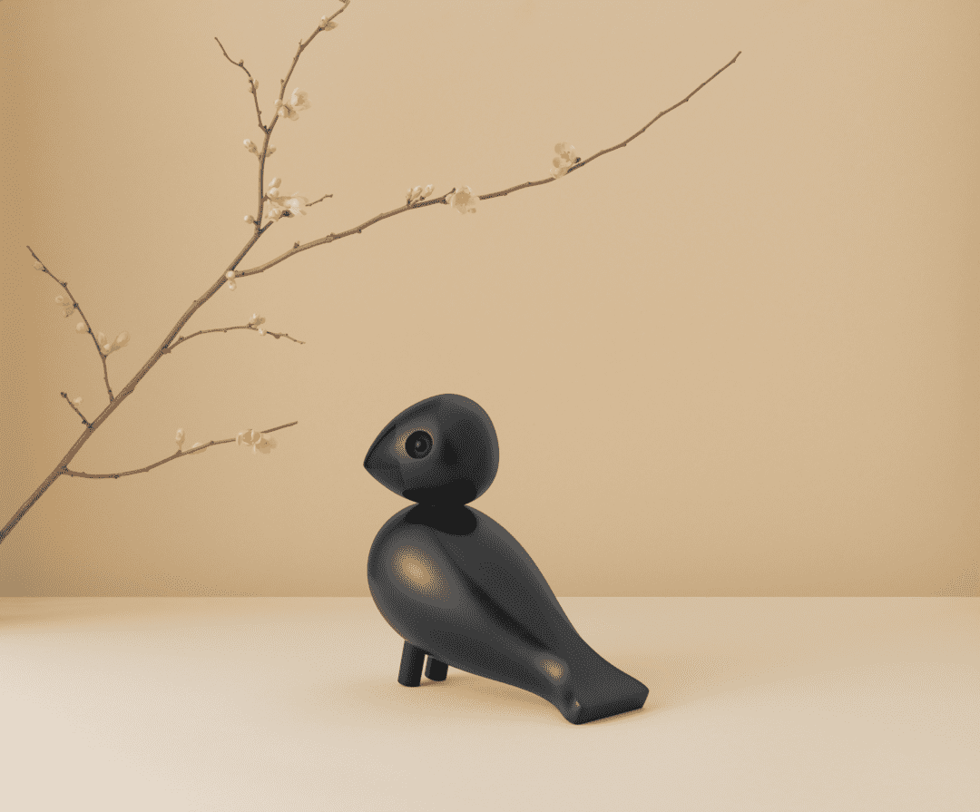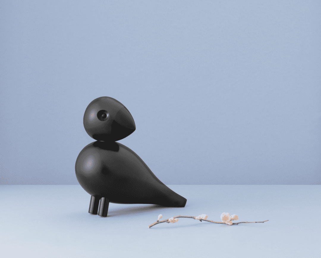 Den sorte sangfuglen Ravn er designet av Kay Bojesen og produsert i malt bøketre. Med den kullsorte fjærprakten er Ravn et stilrent og klassisk innslag i den velkjente og fargerike fugleflokken til Kay Bojesen. God gaveidé til mange anledninger.