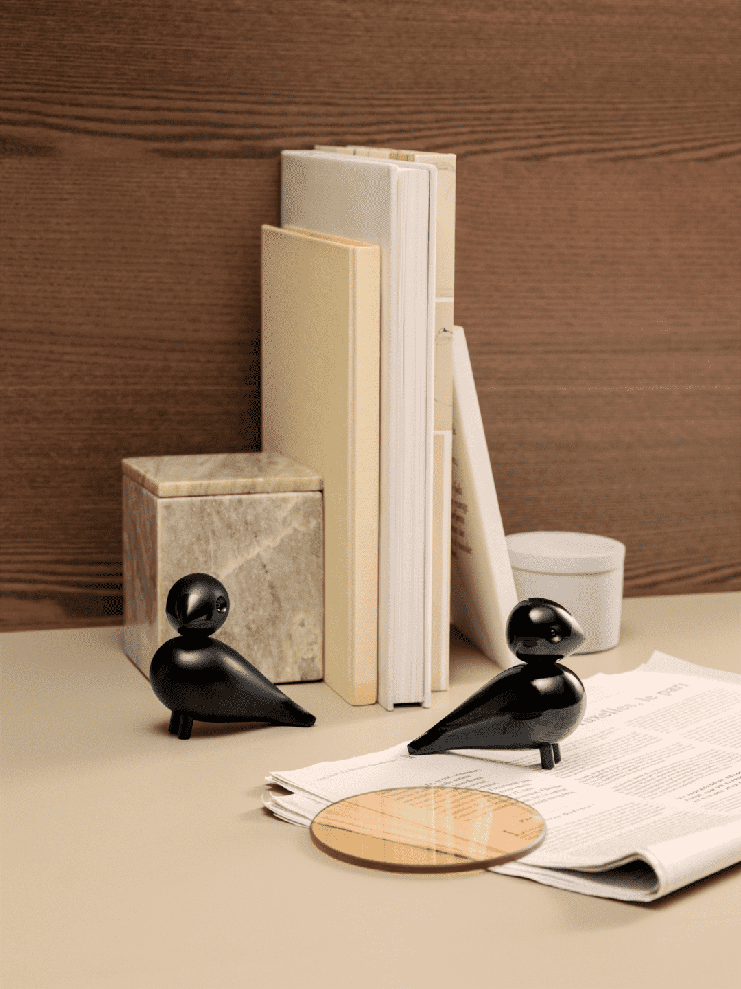 De unike og tidløse turtelduene i sort er inspirert av den sorte sangfuglen Ravn fra Kay Bojesen. Turtelduene er malt i sort. Den sorte fargen gjør turtelduene til et vakkert element i innredningen på en fin og veldig diskré måte. Turtelduene er utformet i bøk, men de er malt i et blankt og matt materiale. Denne diversiteten skaper et spesielt uttrykk. I en innredning vil turtelduene signalisere romantikk, ulikhet og samhørighet.