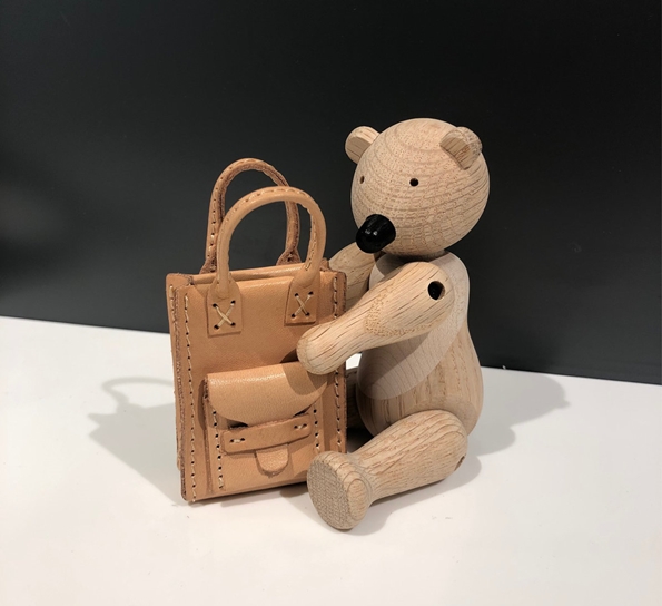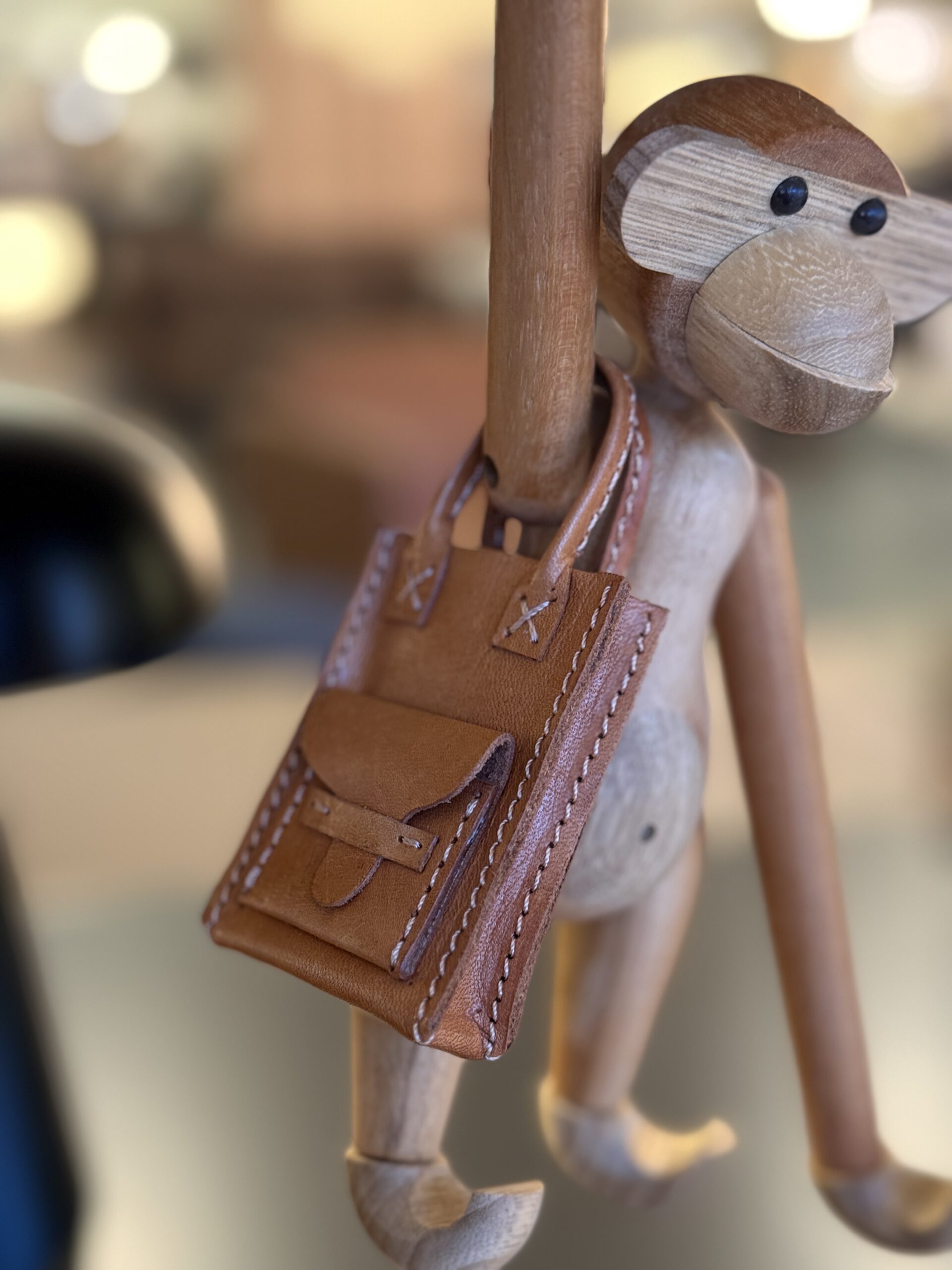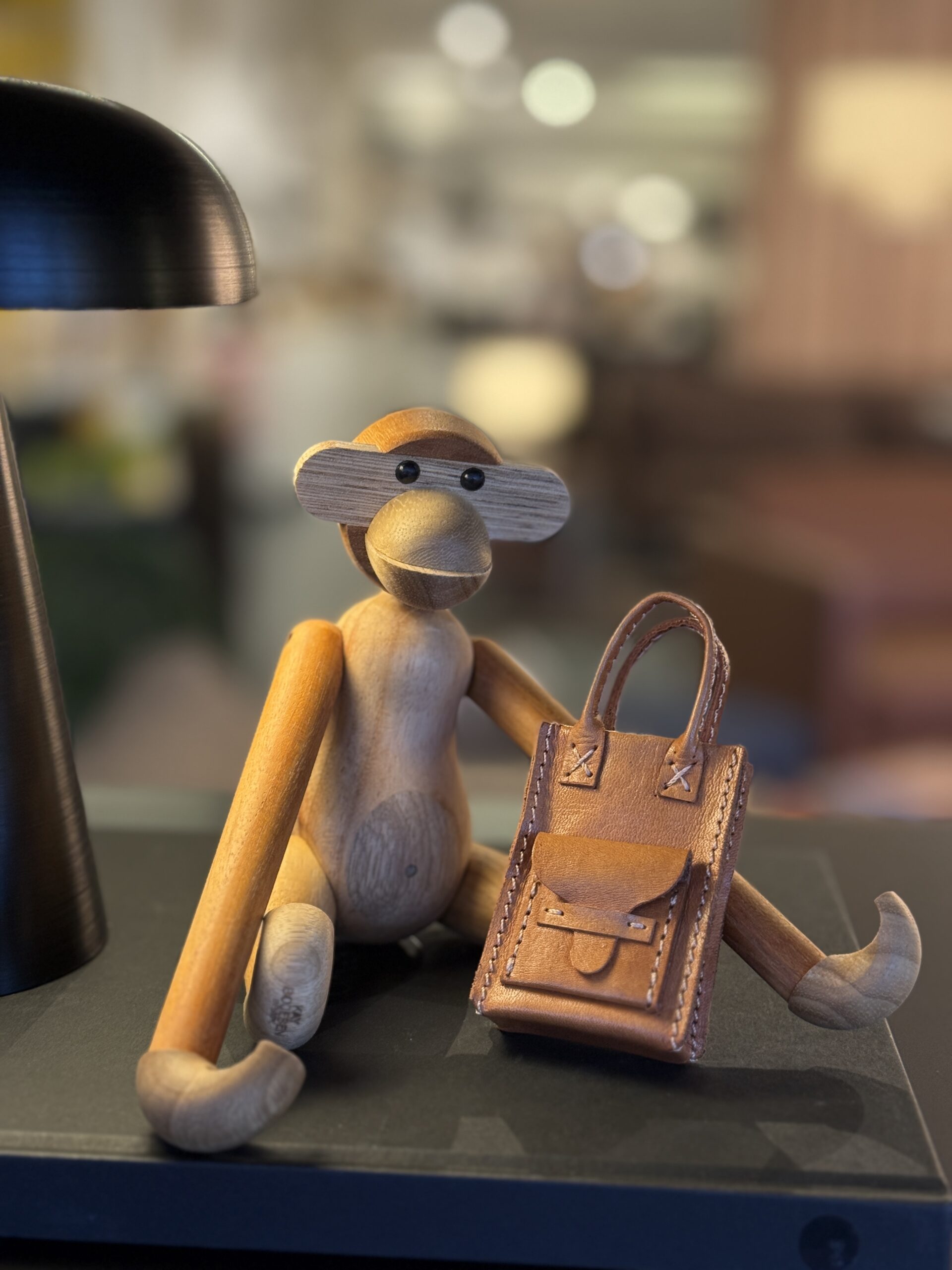 Denne stilige vesken har fått kallenavnet «Kathrine» og er designet med utgangspunkt i at det skal passe til designikonet, den lille apen fra Kay Bojesen. Vesken passer jo også til de andre, kjente figurene i samme størrelse.